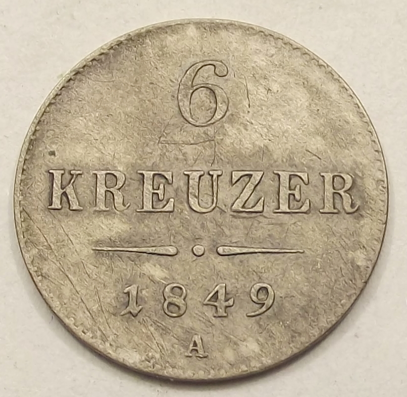 6 krajcár 1849 A, nagyon szép állapotban (lsz