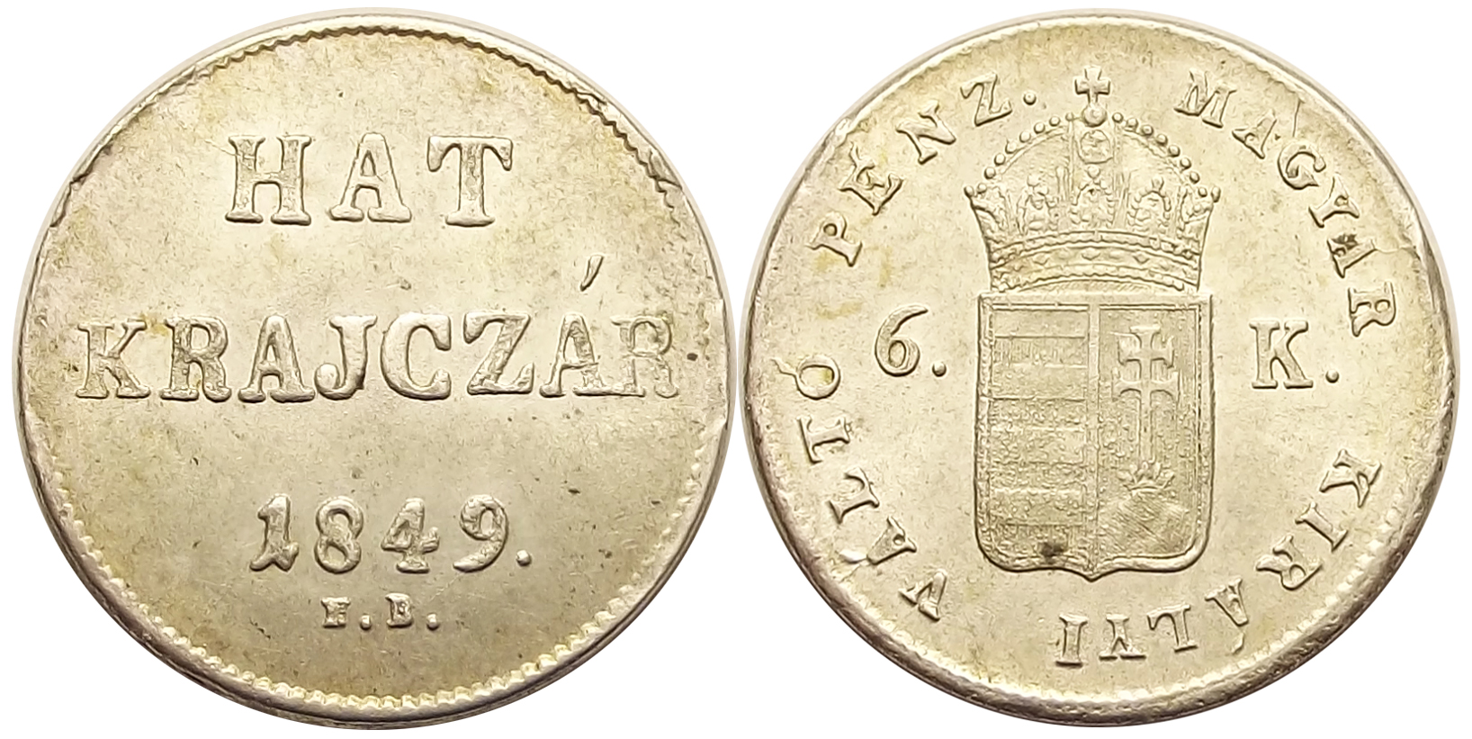 Kiváló tartású ezüst 6 krajcár 1849 Szabadságharc (b