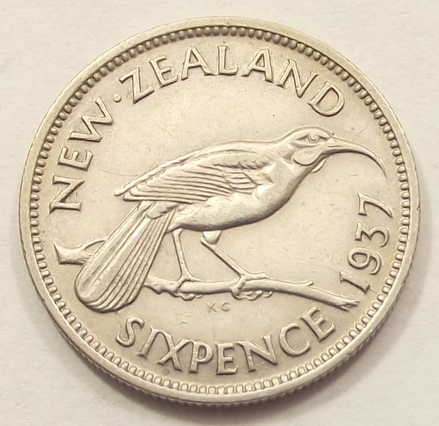 6 pence 1937 Új-Zéland, nagyon szép állapotban (jt