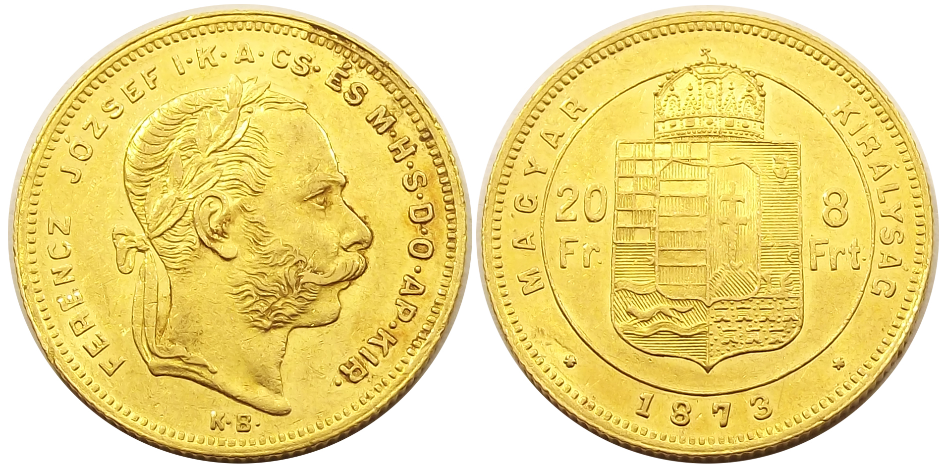 8 forint 1873 Ferenc József, kiváló tartásban. (k