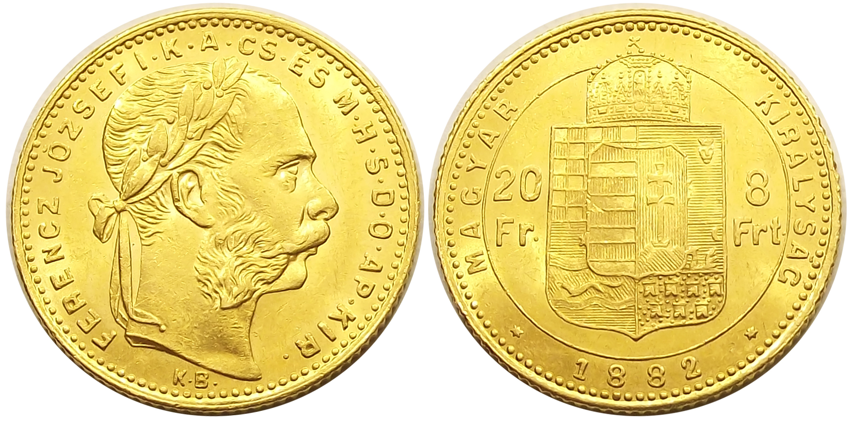 8 forint 1882 Ferenc József, kiváló állapotban. (h