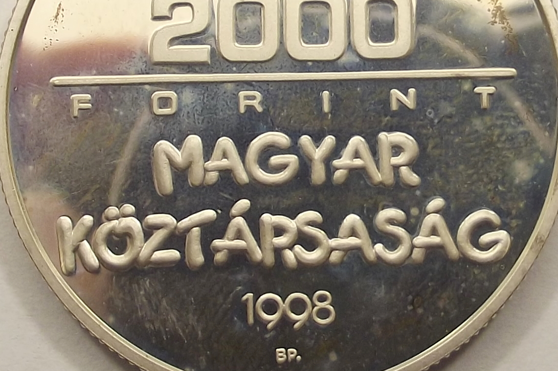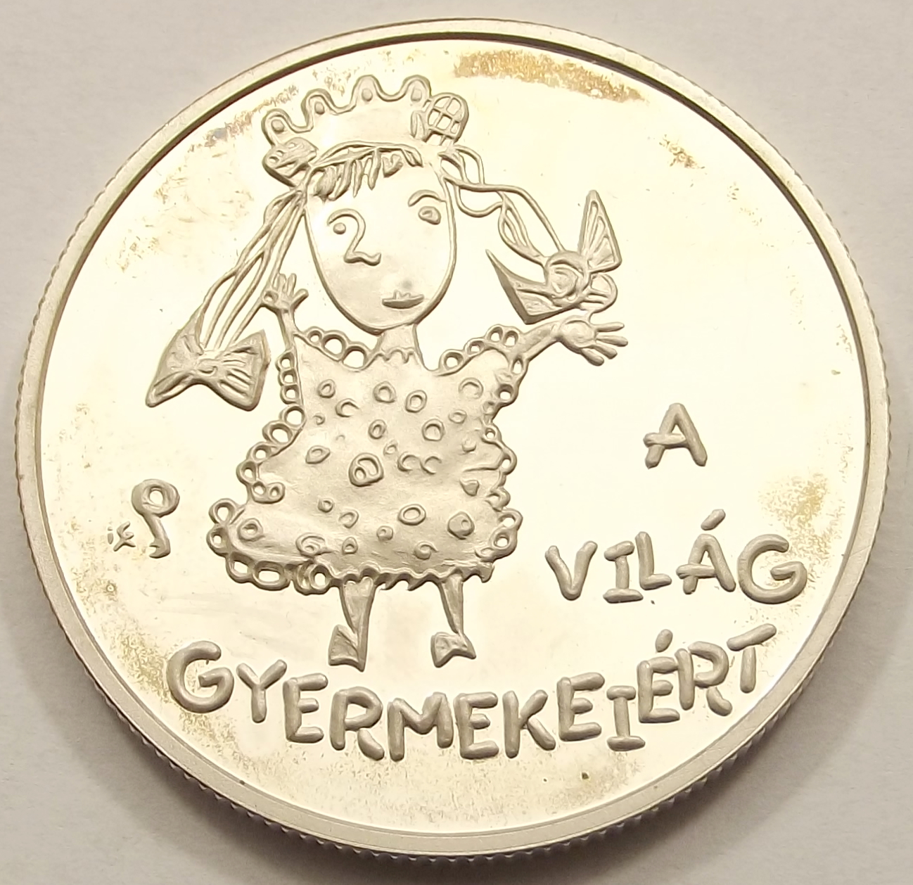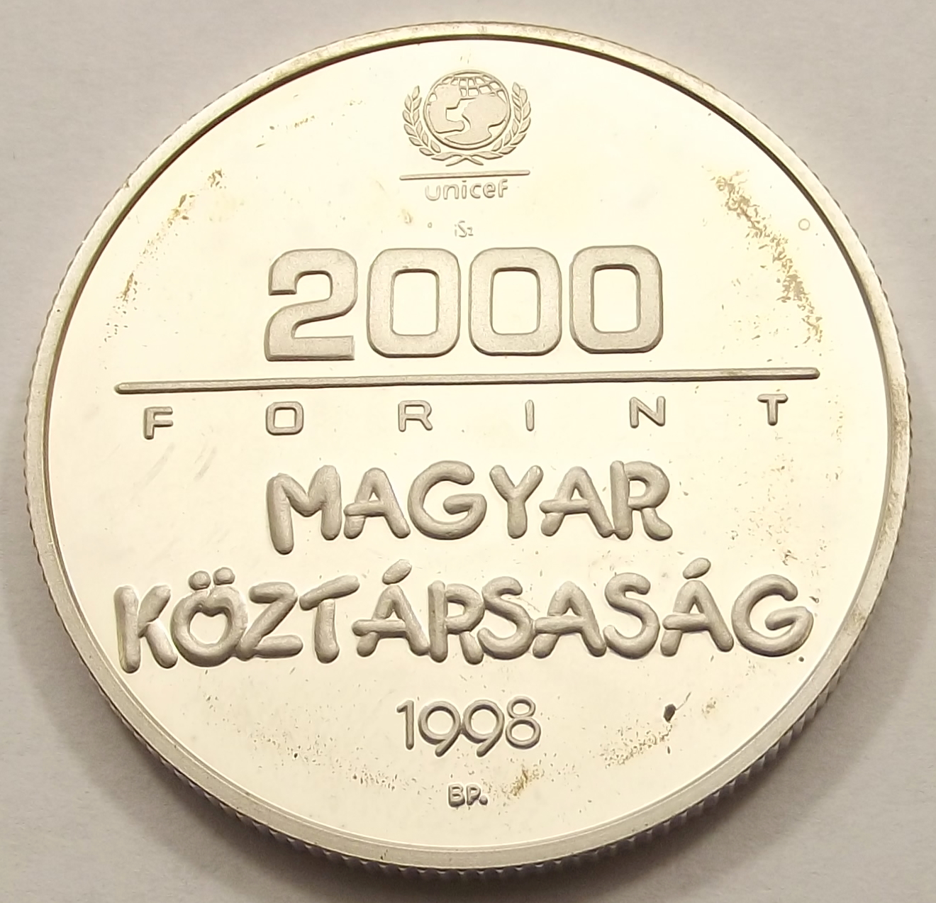 A világ gyermekeiért 2000 forint 1998 PP, szép állapotban, enyhe foltok az érme mindkét felén (baj