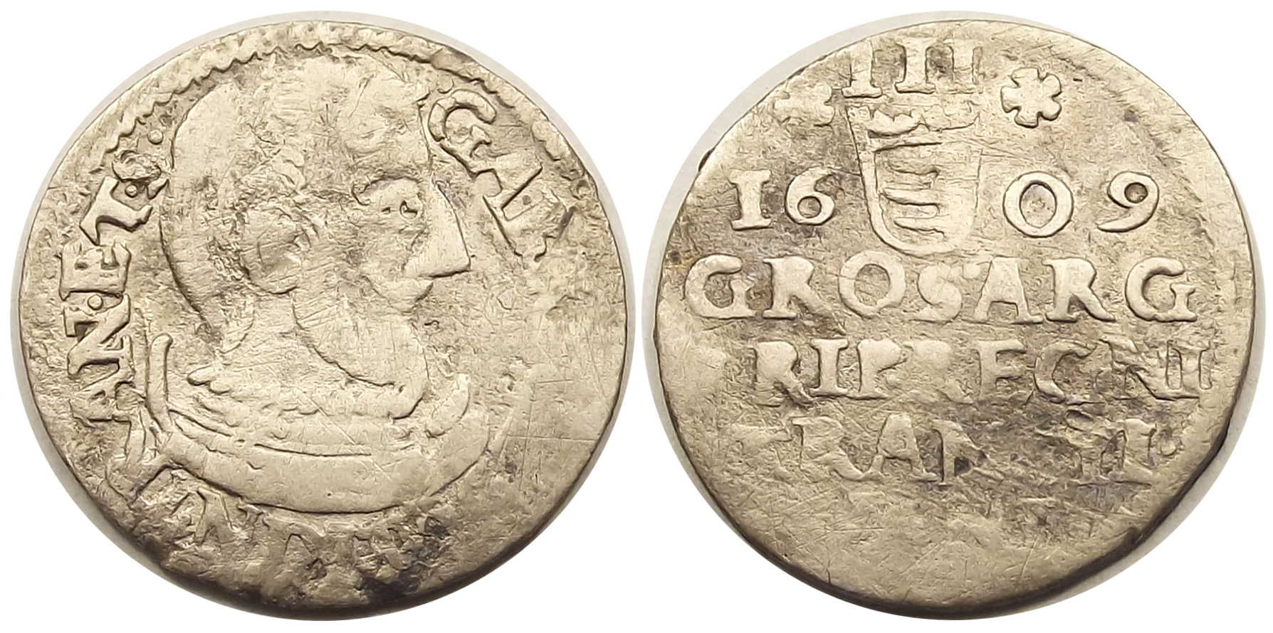 Báthory Gábor 3 garas 1609, szép állapotban (baj.