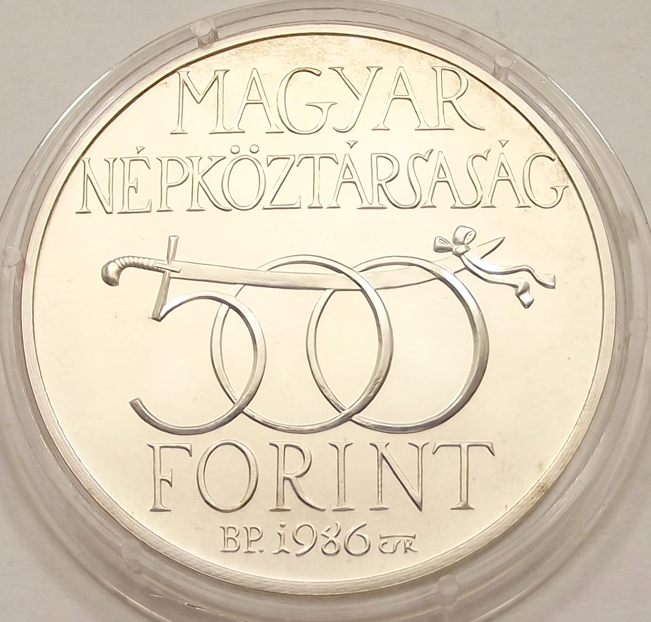 Budavár visszavétele 500 forint 1986 BU, kiváló állapotban, enyhe foltok az érmén (sa