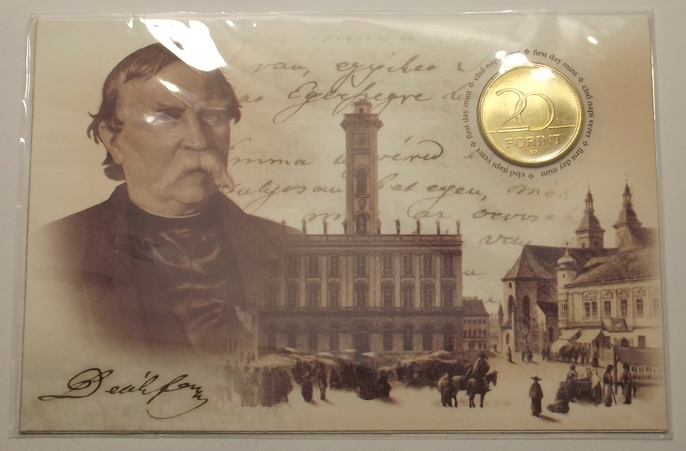 Deák Ferenc 20 forint elsőnapi veret, kiváló állapotban, védőfóliában. (mg