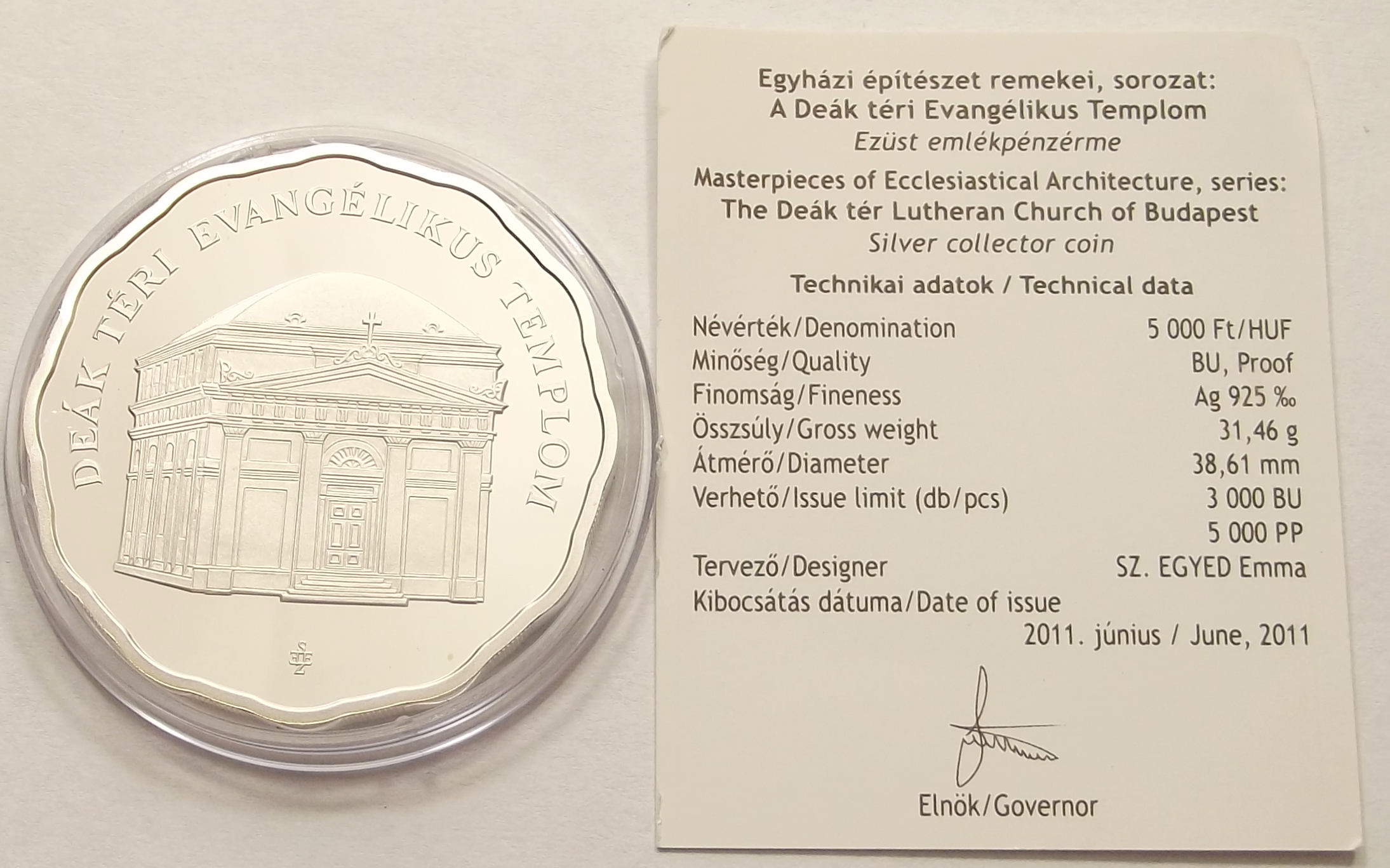 Deák téri evangélikus templom 5000 forint 2011 PP kiváló állapotban, certificate-el (vl