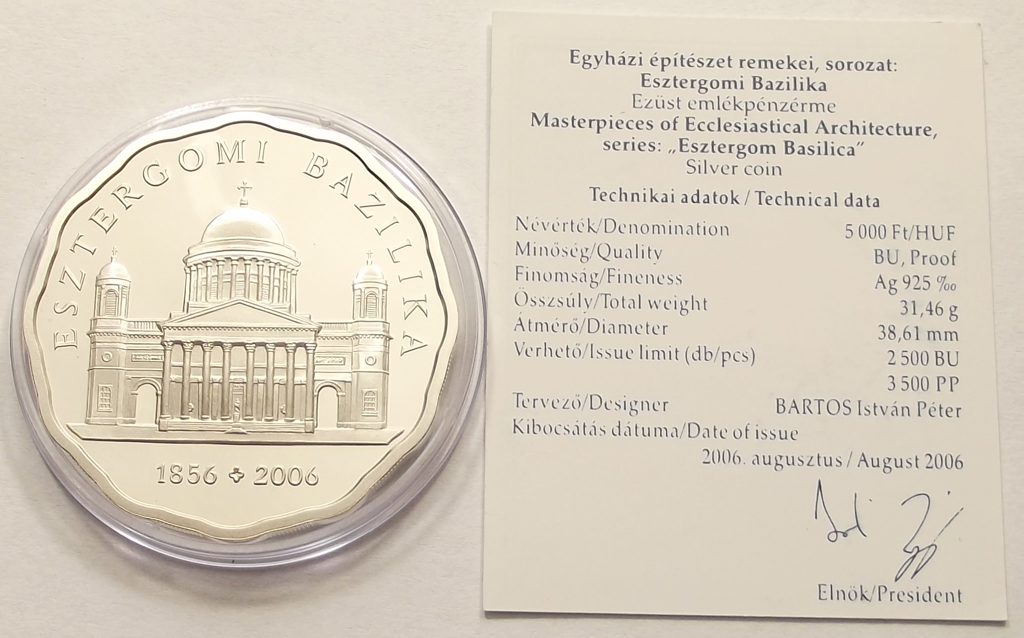 Esztergomi Bazilika 5000 ft 2006 PP kiváló állapotban, certificate-el (vl