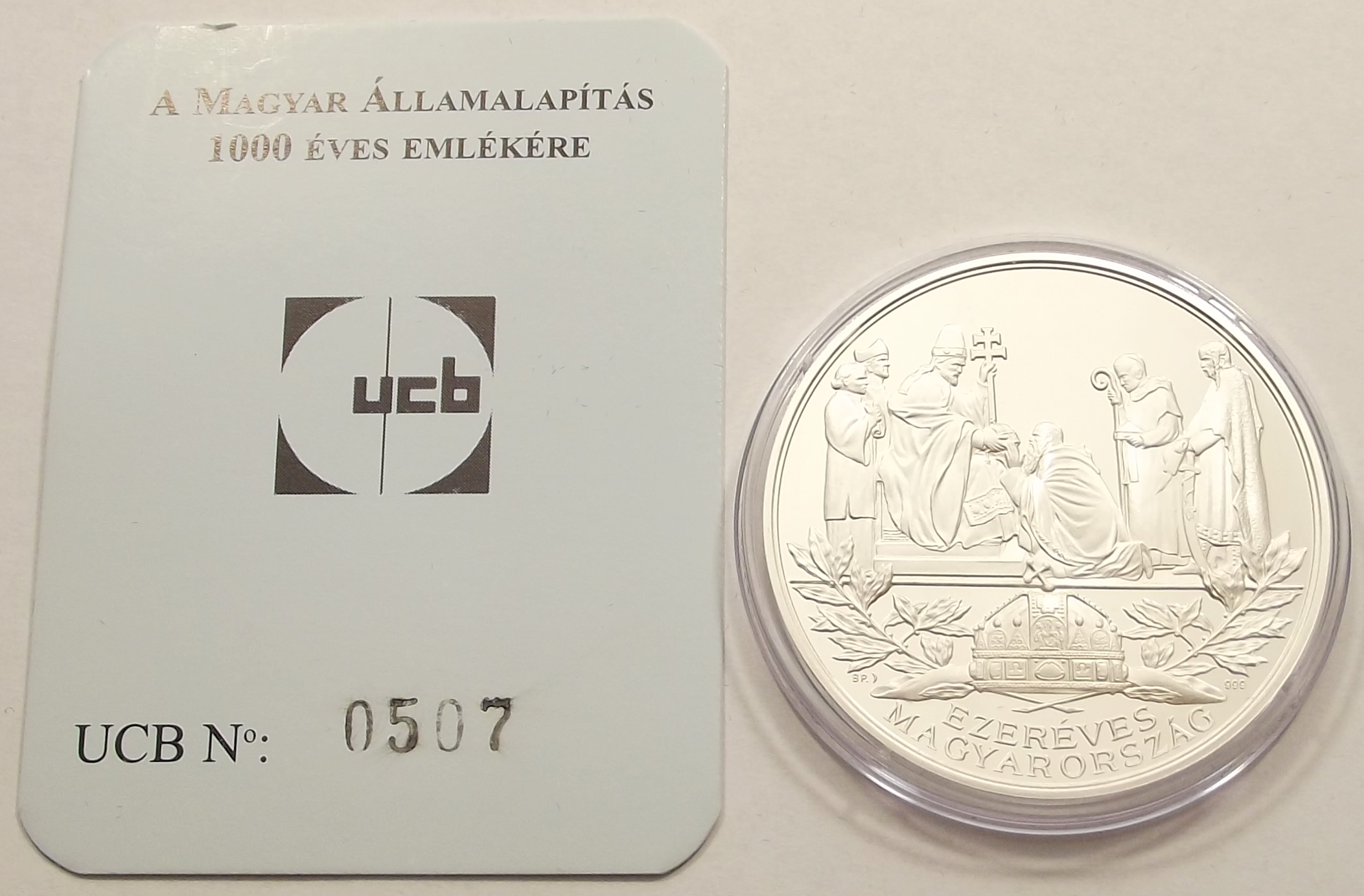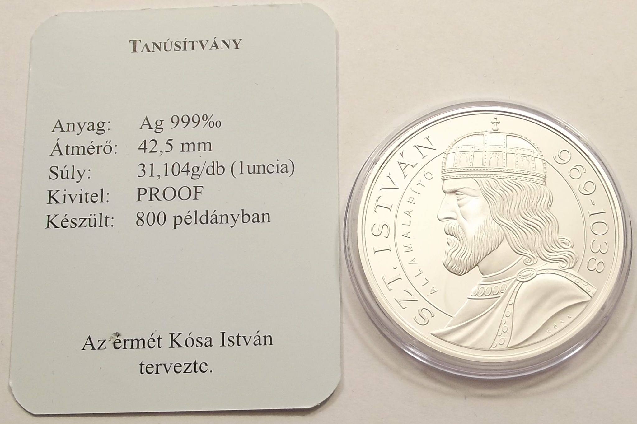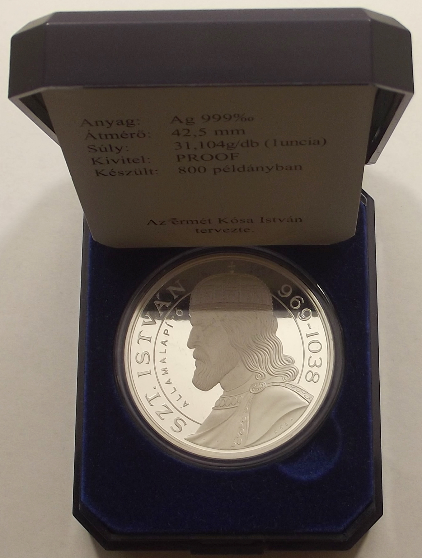 Ezeréves Magyarország – Szent István 1 uncia színezüst emlékérem díszdobozban, certificate-el (ua