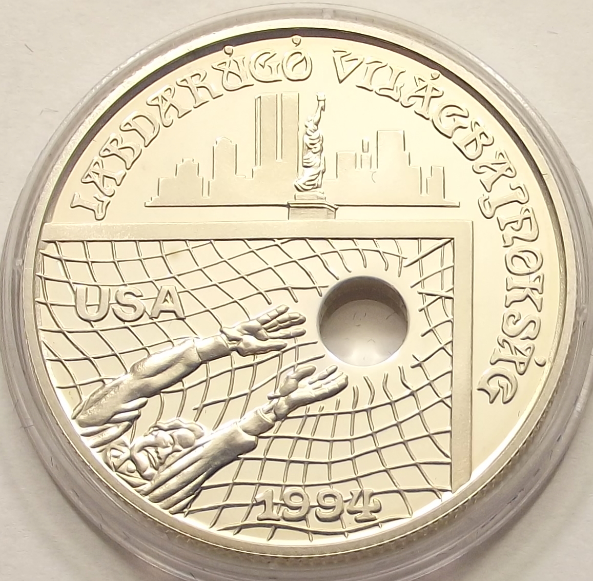 Foci VB USA 1994 1000 forint 1993 PP nagyon szép állapotban; foltok ill pára az érme mindkét felén (ti