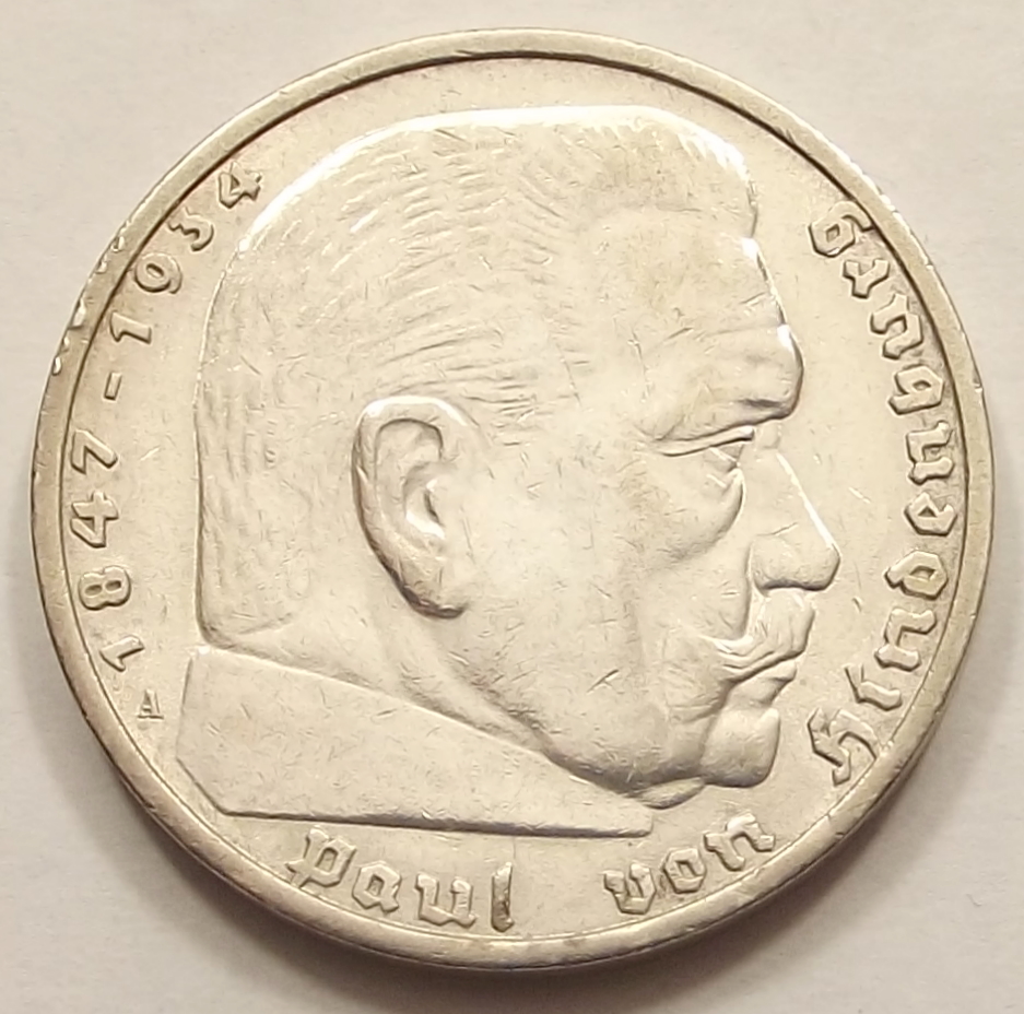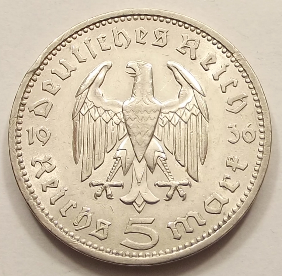 Hindenburg 5 márka 1936 A, nagyon szép állapotban. (kf
