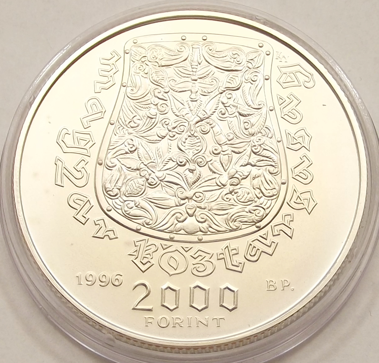Honfoglalás 2000 forint 1996 BU kivitelben, nagyon szép állapotban, enyhe foltok az érmén (sa