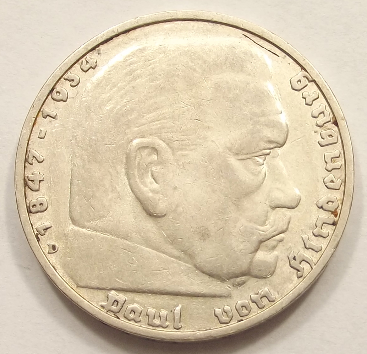 Horogkeresztes ezüst 5 márka 1938 D, nagyon szép állapotban (fb