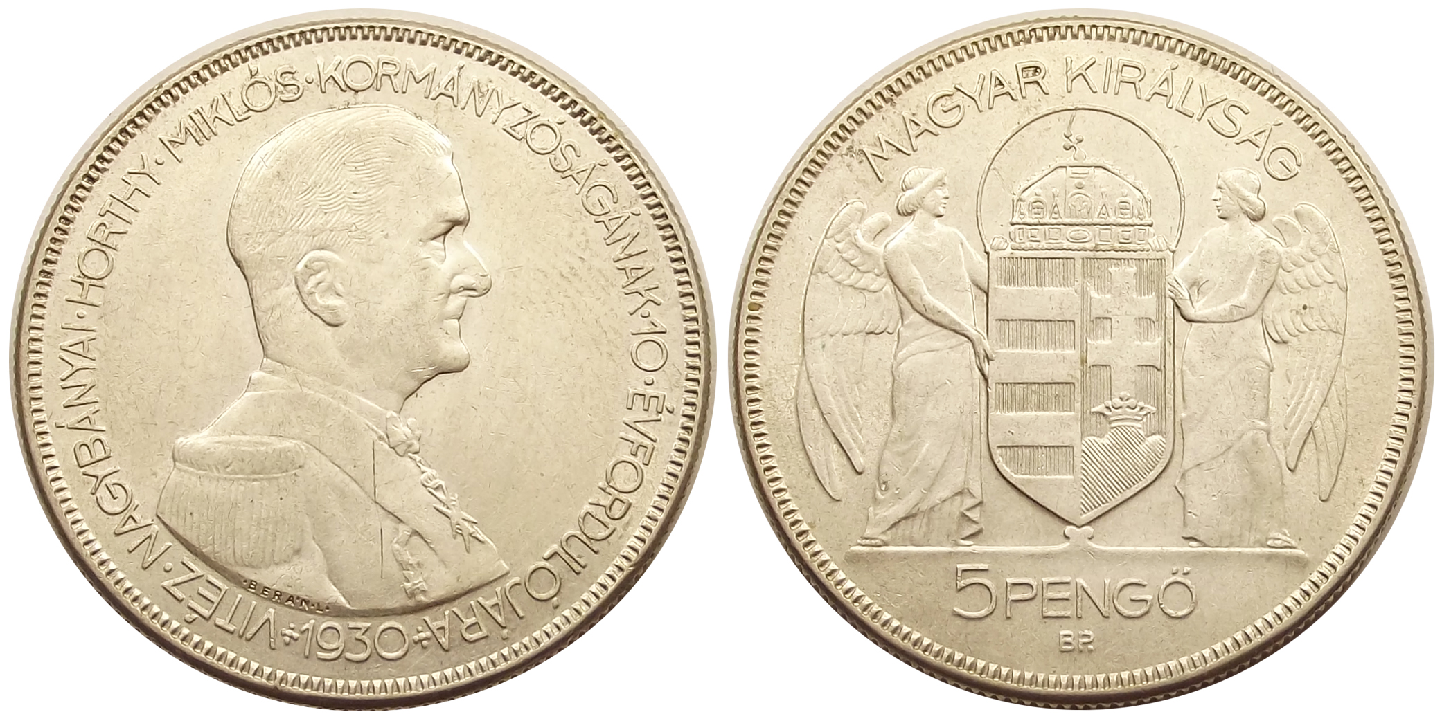 Horthy ezüst 5 pengő 1930 kiváló állapotban, szépen kivehető hajjal. (kt