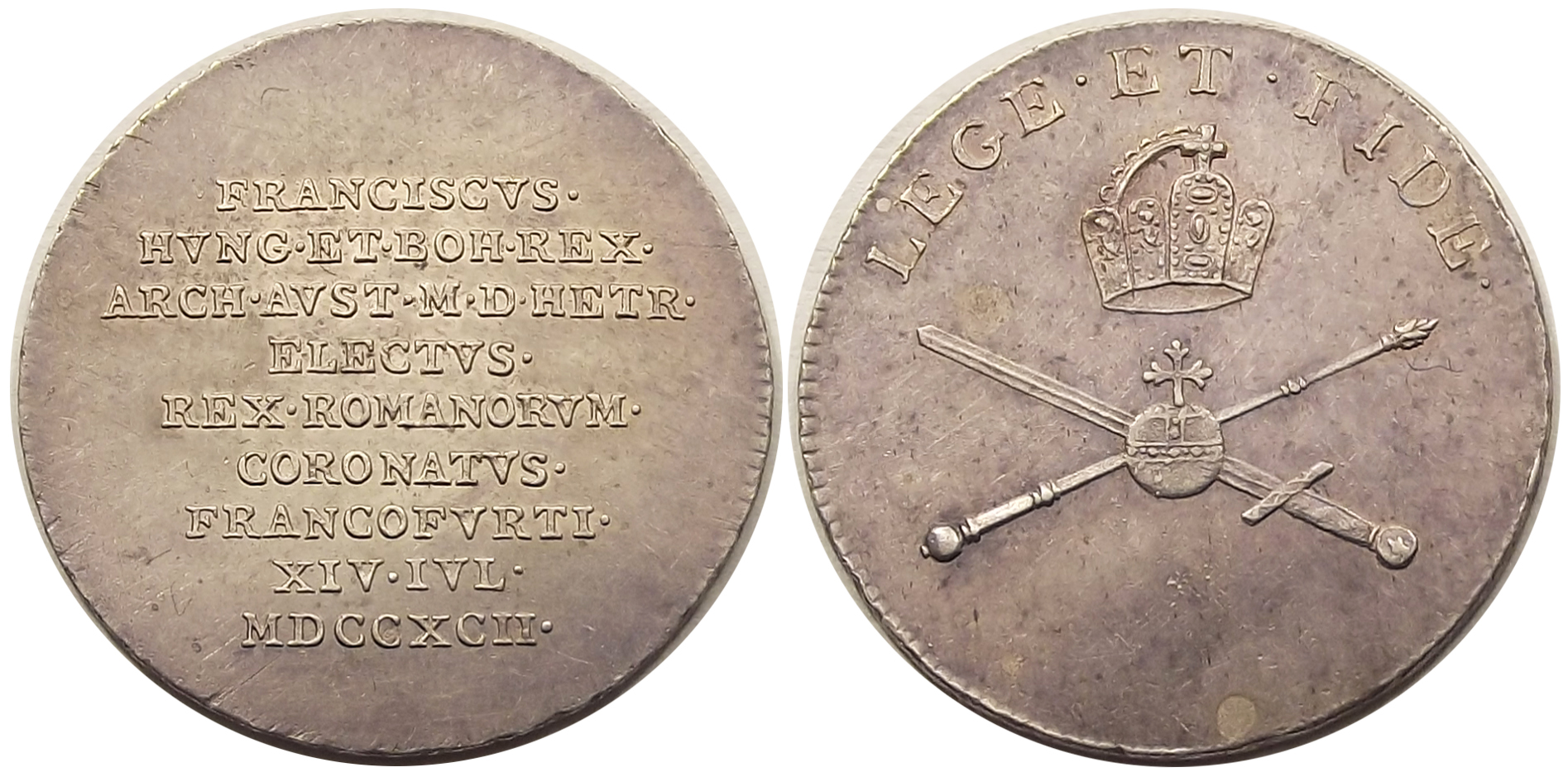 I. Ferenc 1792 (német-római császár) koronázási zseton kiváló állapotban, szépen kivehető verdefénnyel (gy