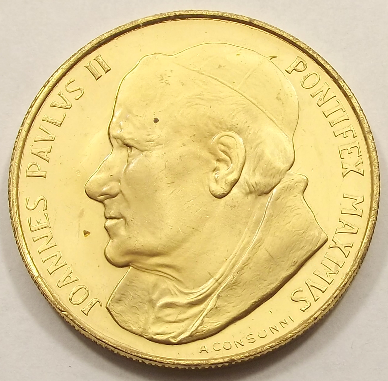 II. János Pál pápa emlékérem nagyon szép állapotban, apró ütésnyom a mezőben, enyhe foltok (moh