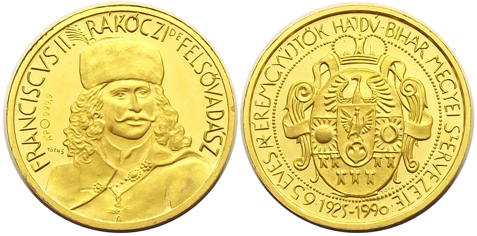 A Magyar Éremgyűjtők Egyesülete által kiadott ritka arany emlékérme, PP kivitelben, kiváló állapotban. Mindössze 80 darab készült.