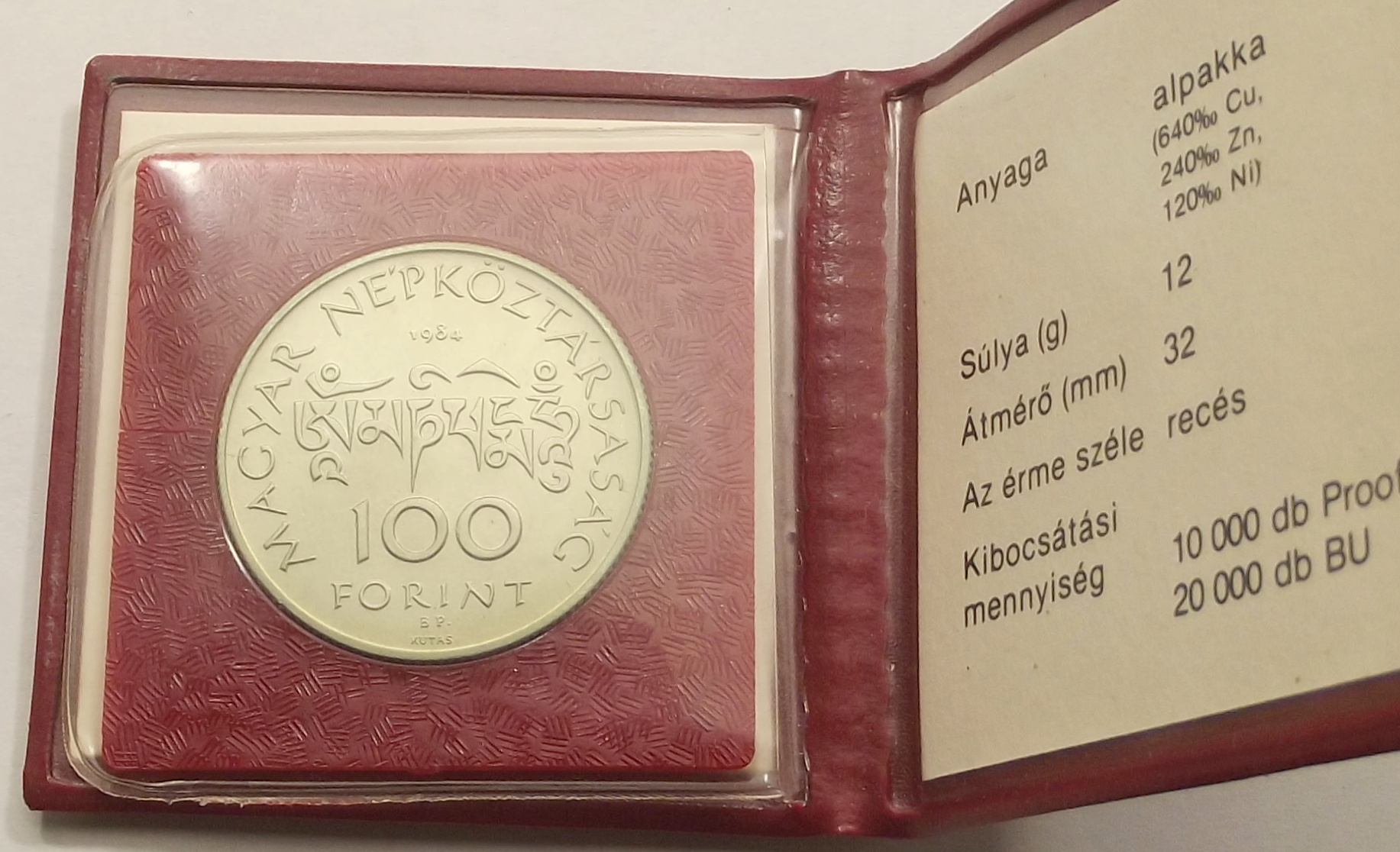 Kőrösi Csoma Sándor 100 forint 1984 BU eredeti csomagolásban, kiváló állapotban. (gyr