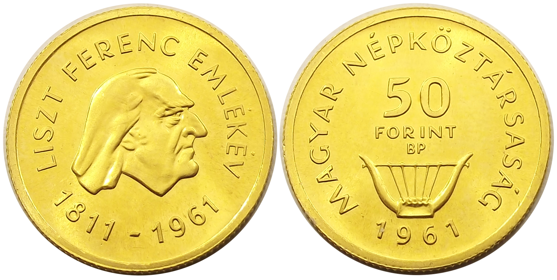Liszt Ferenc 50 forint 1961, kiváló állapotban. Egészen minimális mikrokarc, ebben a tartásban ritkán fordul elő. (jz