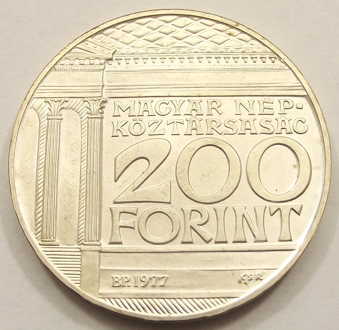 Magyar Nemzeti Múzeum 200 forint 1977 BU kivitelben, szép állapotban, foltok az érme mindkét felén (baj