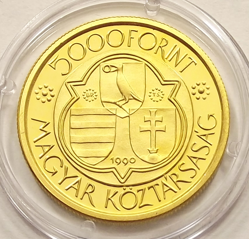 Mátyás király 5000 forint 1990 PP kivitelben, kiváló állapotban. Enyhe pára az érmén. (sl