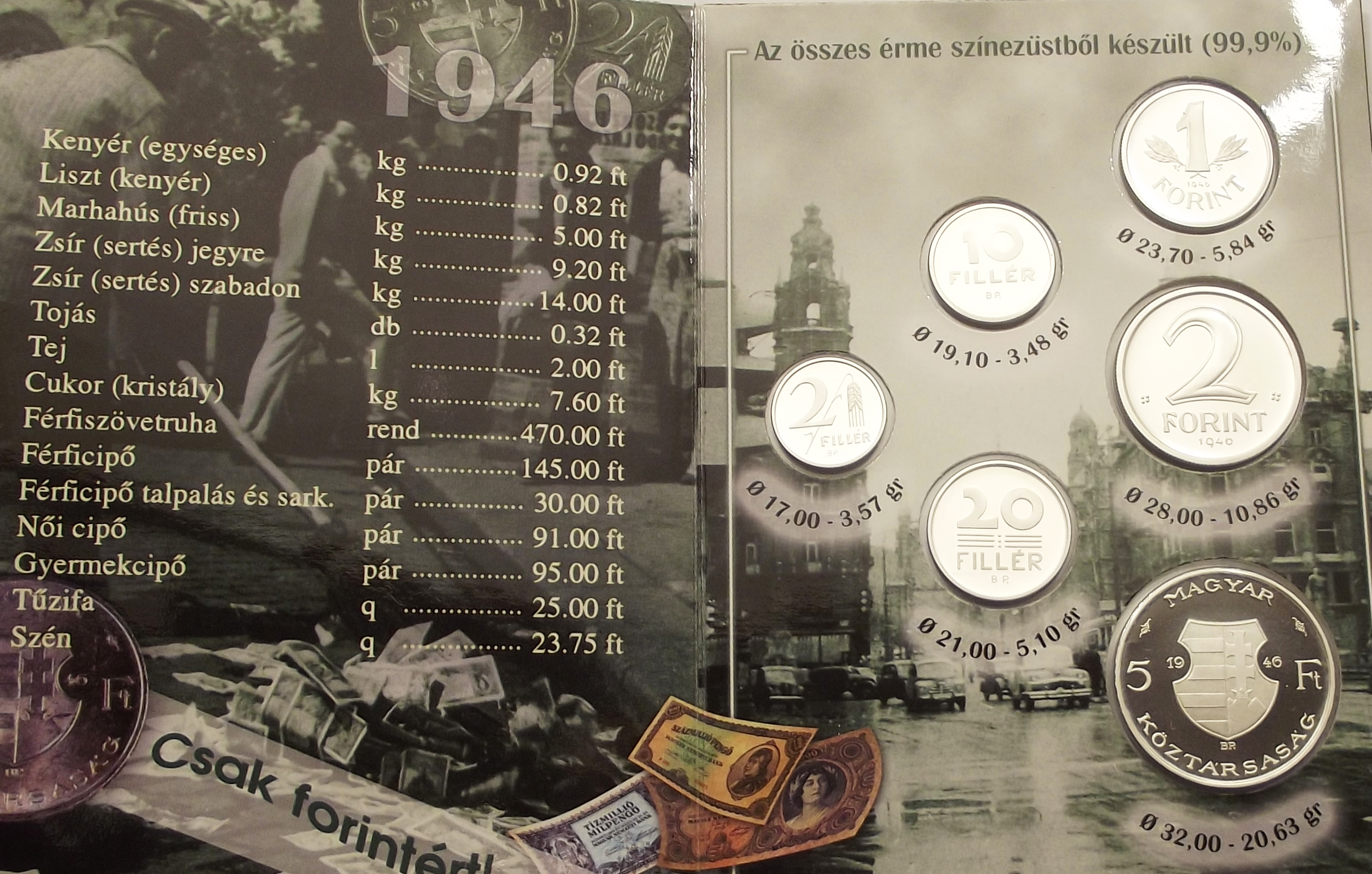 Mesterdarabok ezüstből 1946 – Forint sor, kiváló állapotban, eredeti borítékjában (fj