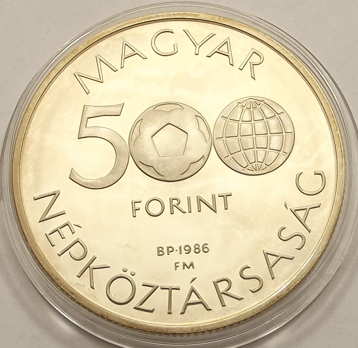 Mexikó Foci VB 500 forint 1986 PP kiváló állapotban, enyhe foltosodás az érme mindkét felén (cst