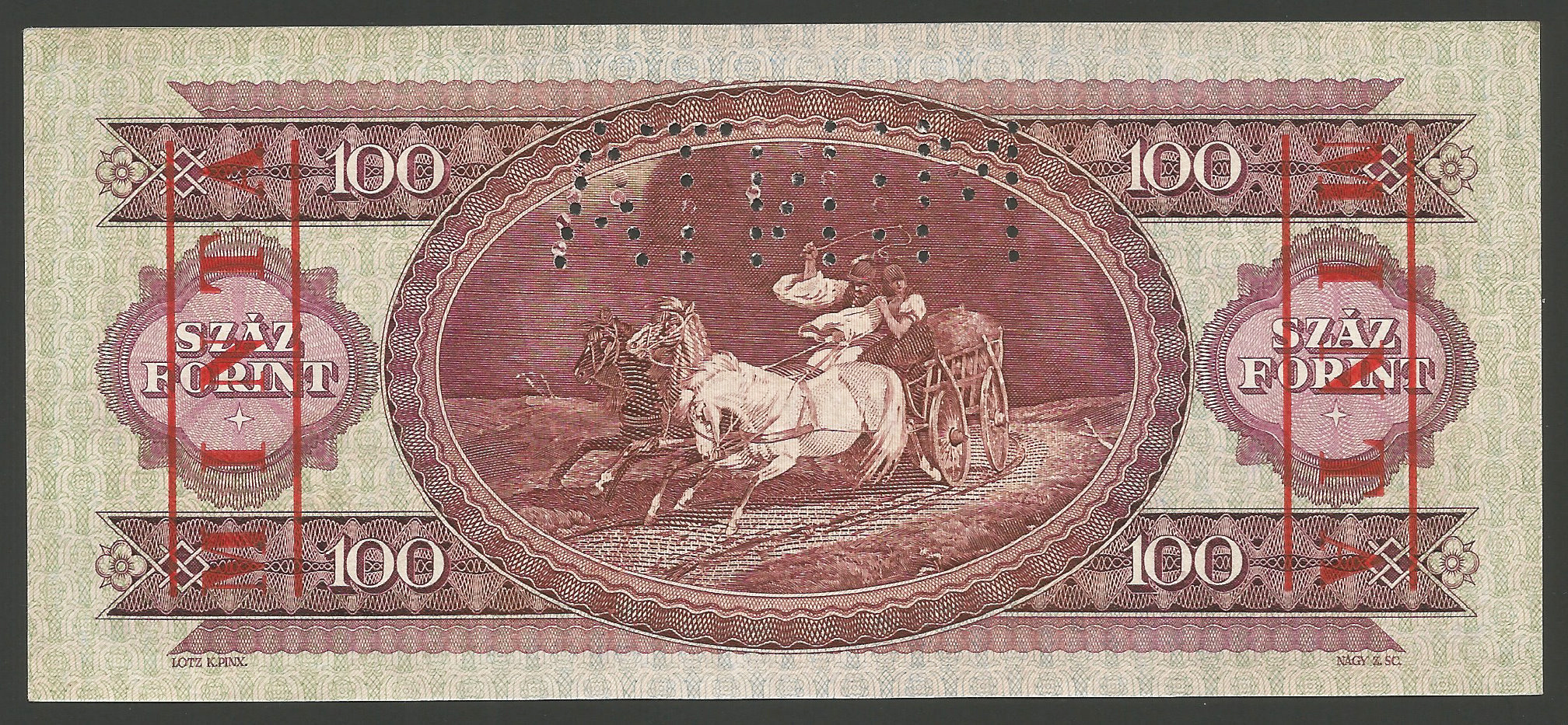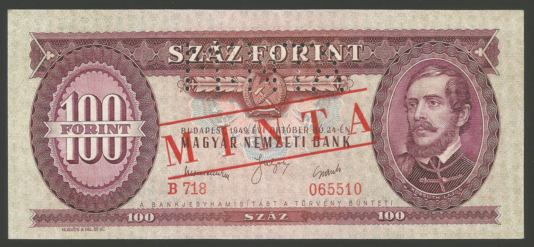 MINTA 100 forint 1949 perforáció + bélyegzés kiváló hajtatlan állapotban. (sf