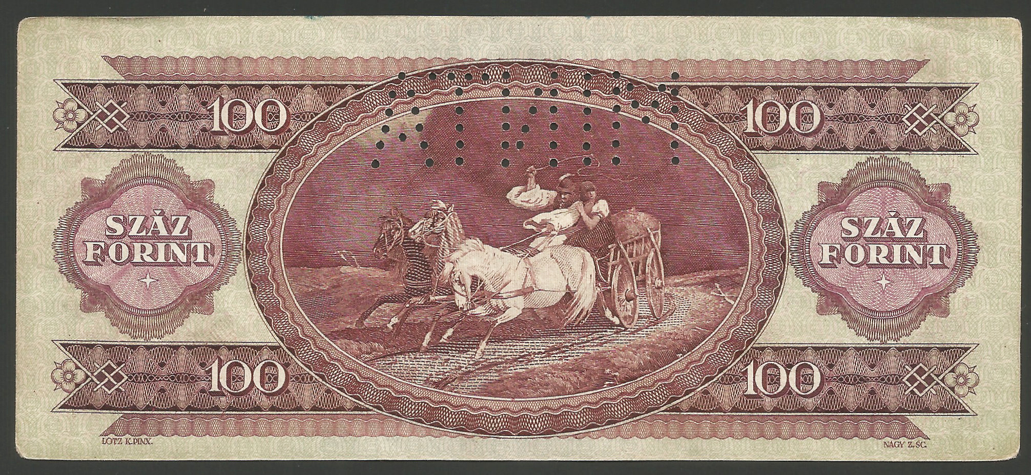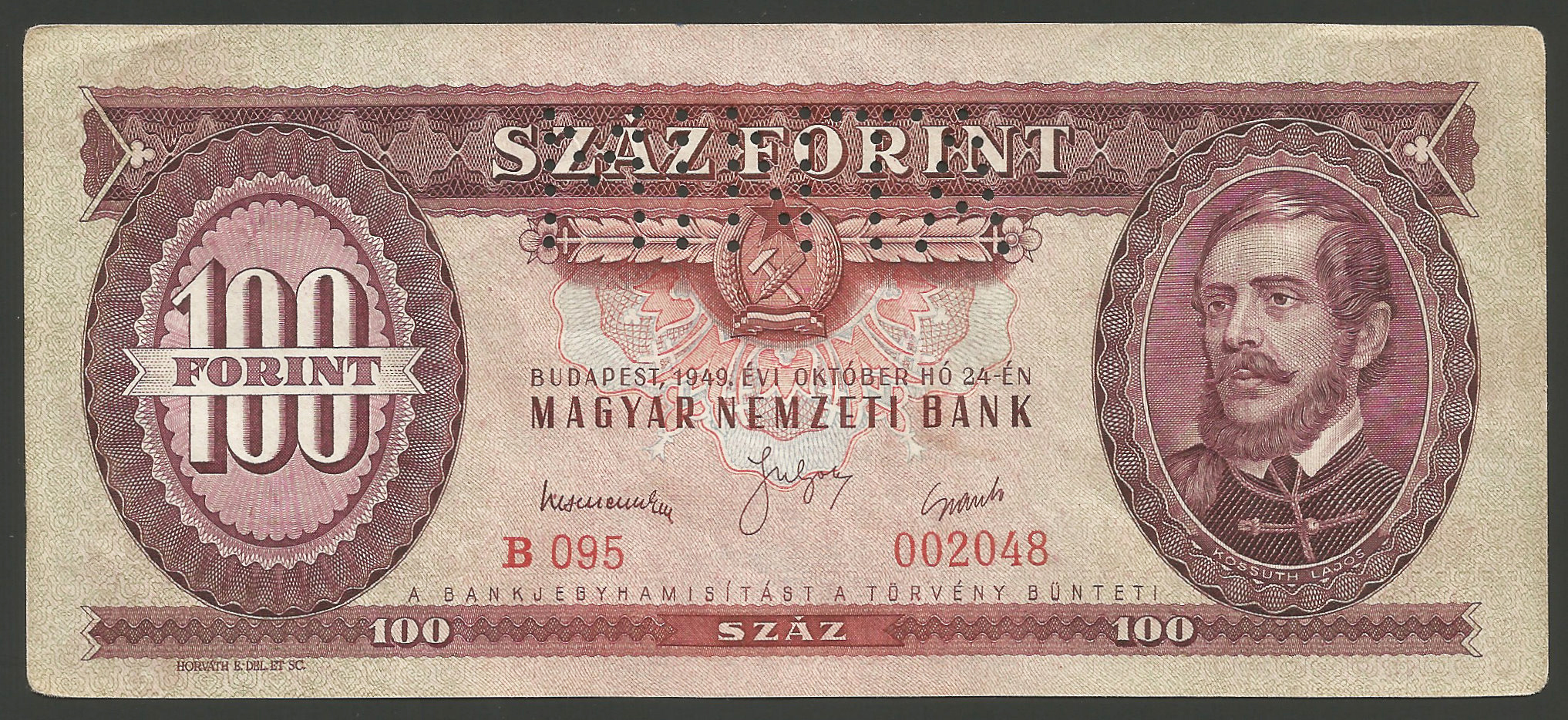 MINTA 100 forint 1949 perforáció kiváló hajtatlan állapotban, tompa sarkokkal. (sf