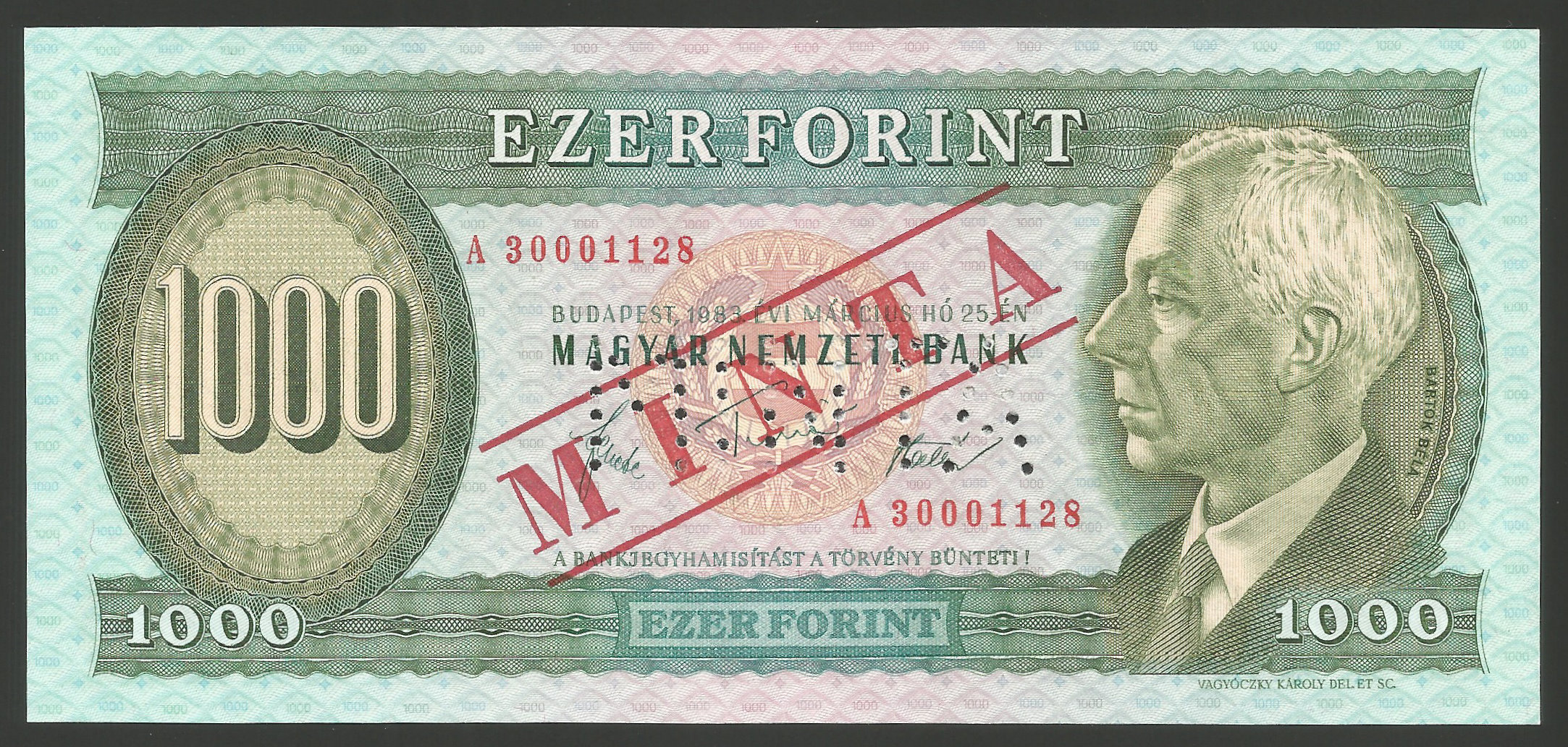 MINTA 1000 forint 1983 A perforáció + bélyegzés kiváló hajtatlan állapotban. (sf