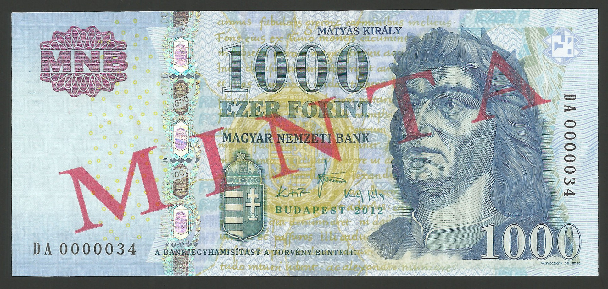 MINTA 1000 forint 2012 hajtatlan állapotban. (sf