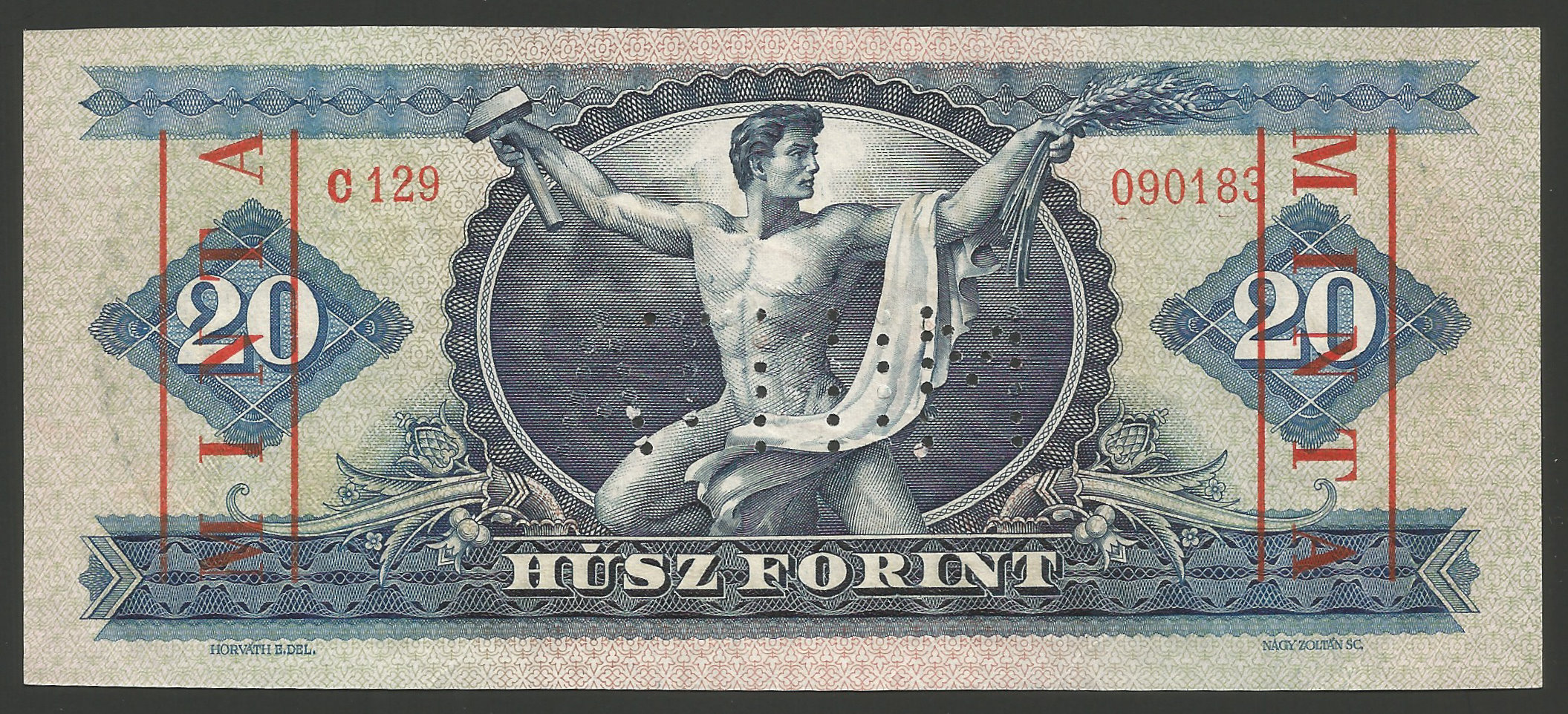 MINTA 20 forint 1965 perforáció + bélyegzés