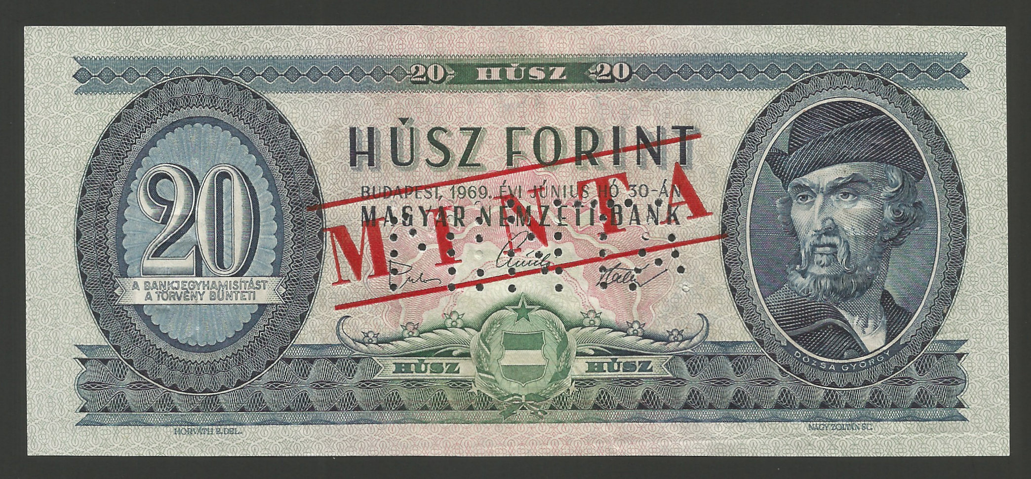 MINTA 20 forint 1969 – kiváló állapotú minta bankjegy, hajtatlan állapotban. (ml