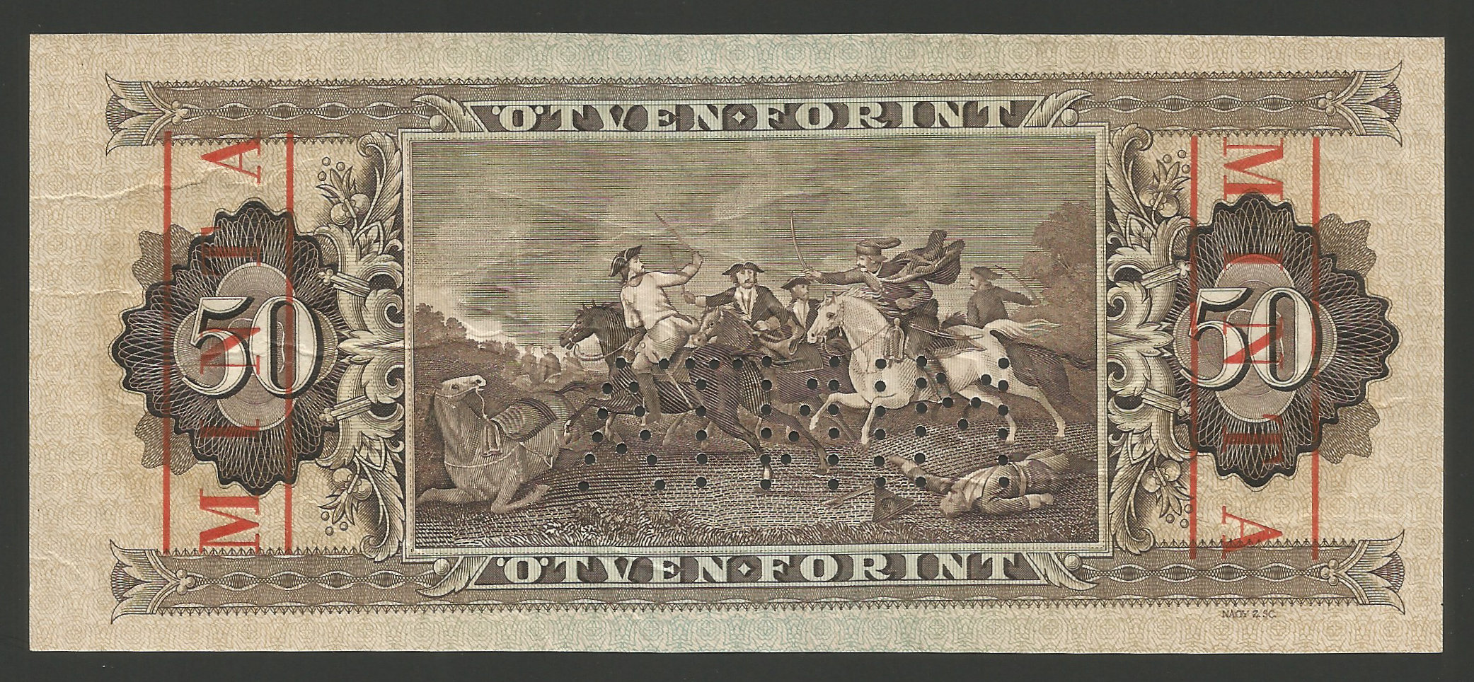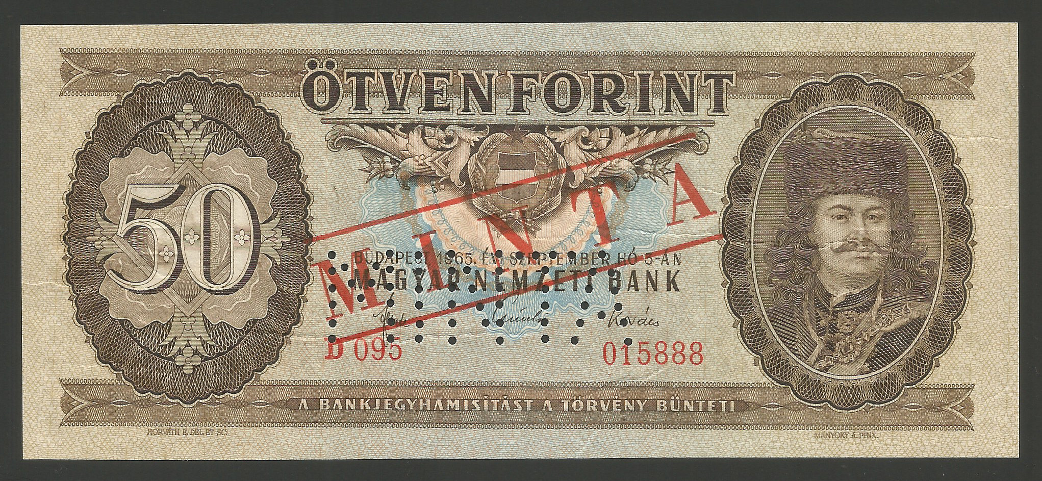 MINTA 50 forint 1965 – kiváló állapotú ritka minta bankjegy, hajtatlan állapotban. Gyári papírráncok. (ml