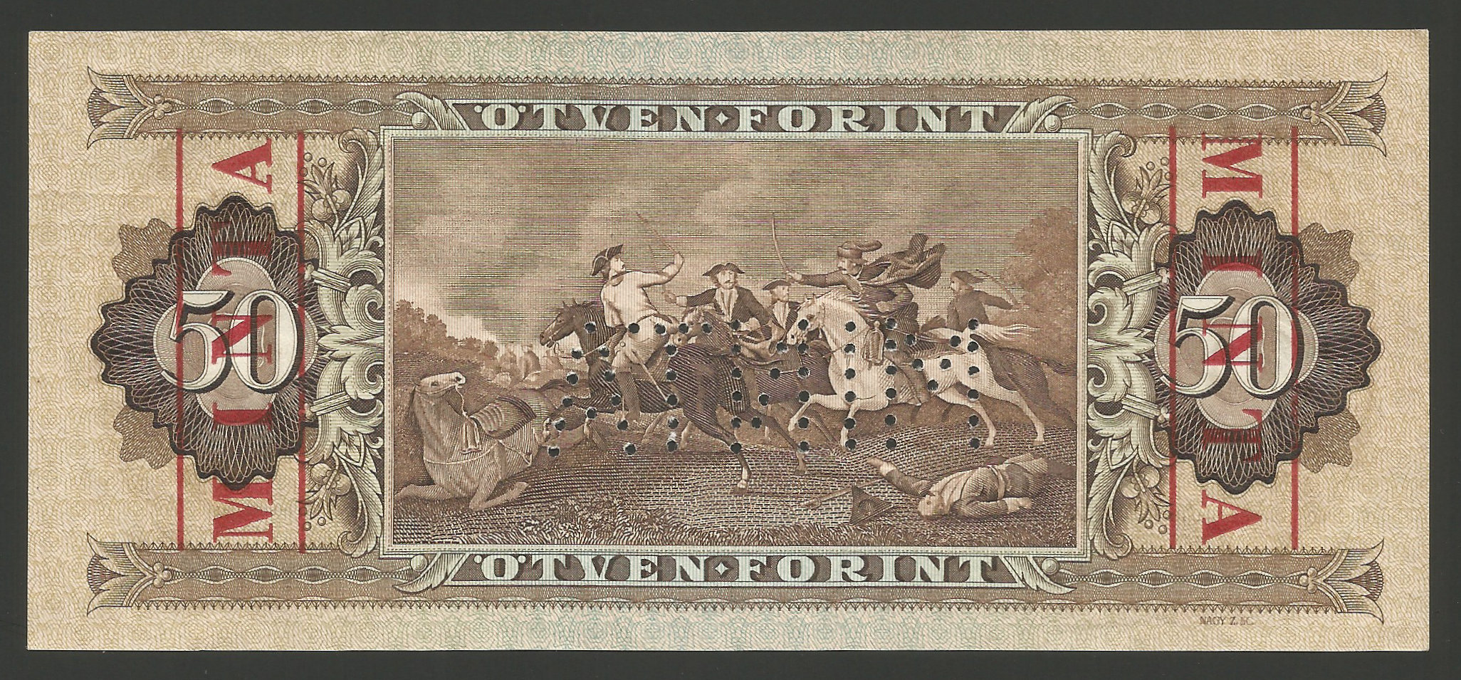 MINTA 50 forint 1975 – kiváló állapotú ritka minta bankjegy, hajtatlan állapotban.(ml