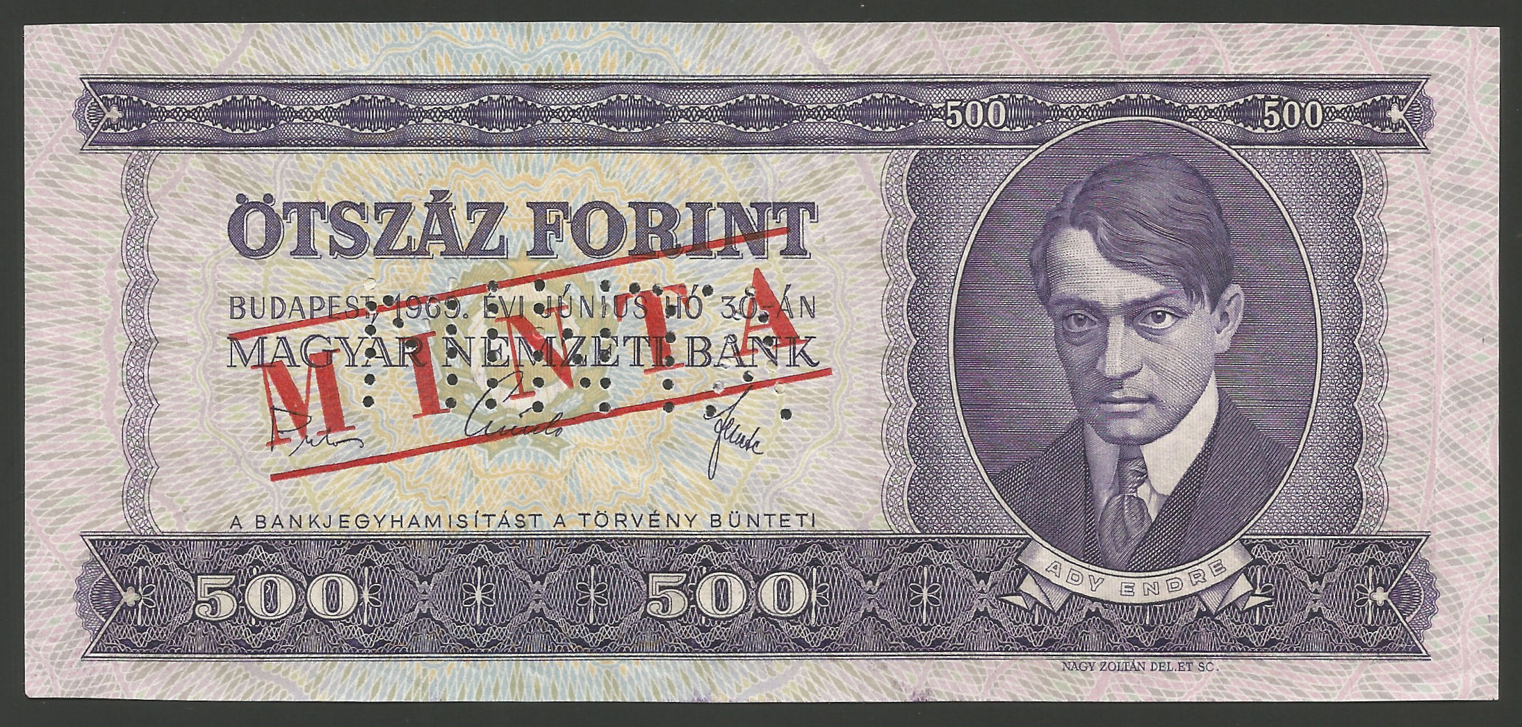 MINTA 500 forint 1969 perforáció + bélyegzés