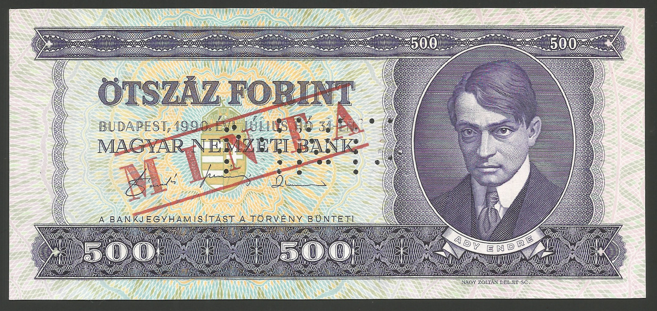 MINTA 500 forint 1990 perforáció + bélyegzés