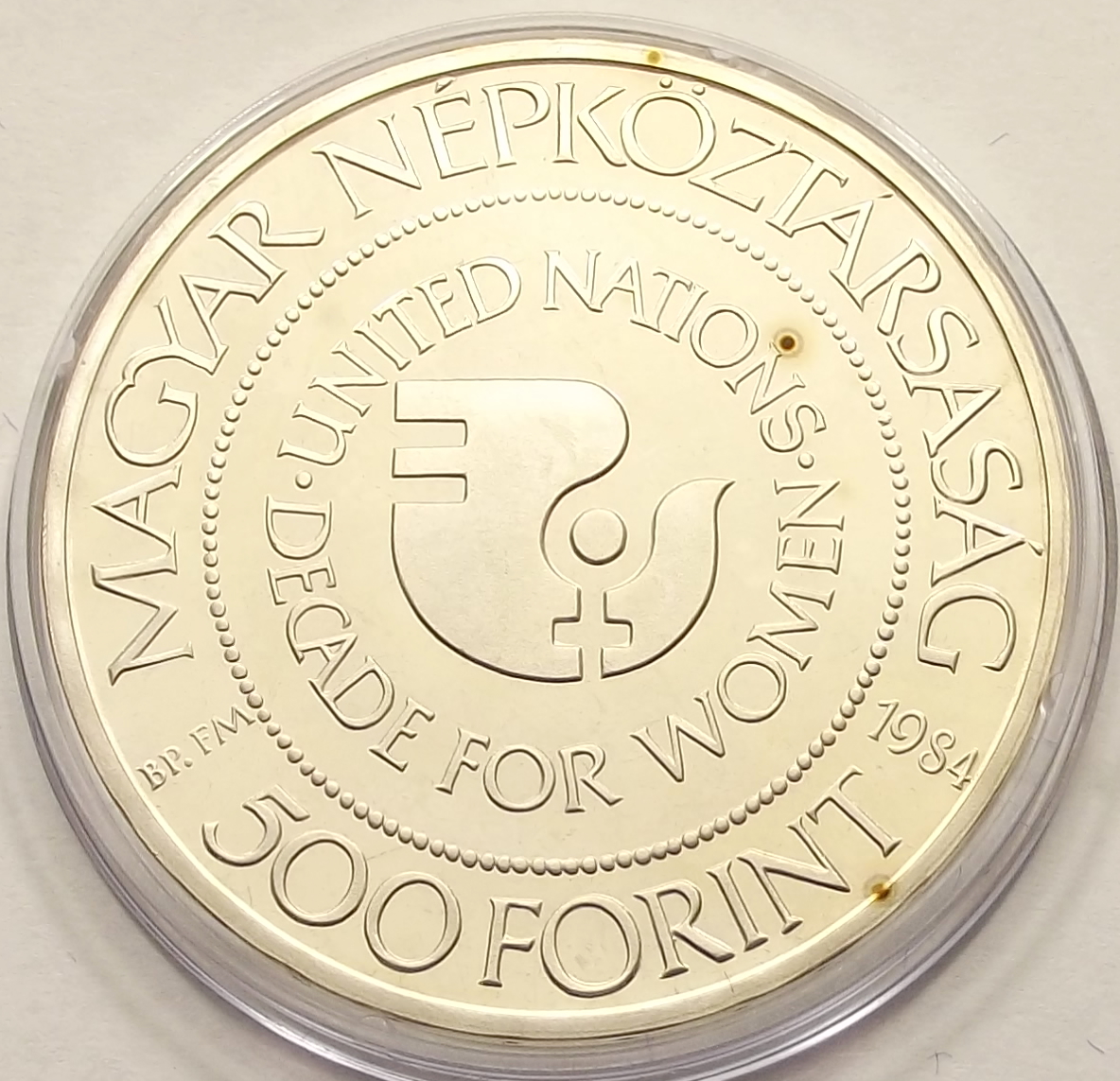 Nők évtizede 500 forint 1984 PP kiváló állapotban, enyhe pára az érmén ill. feketés pöttyök (ti