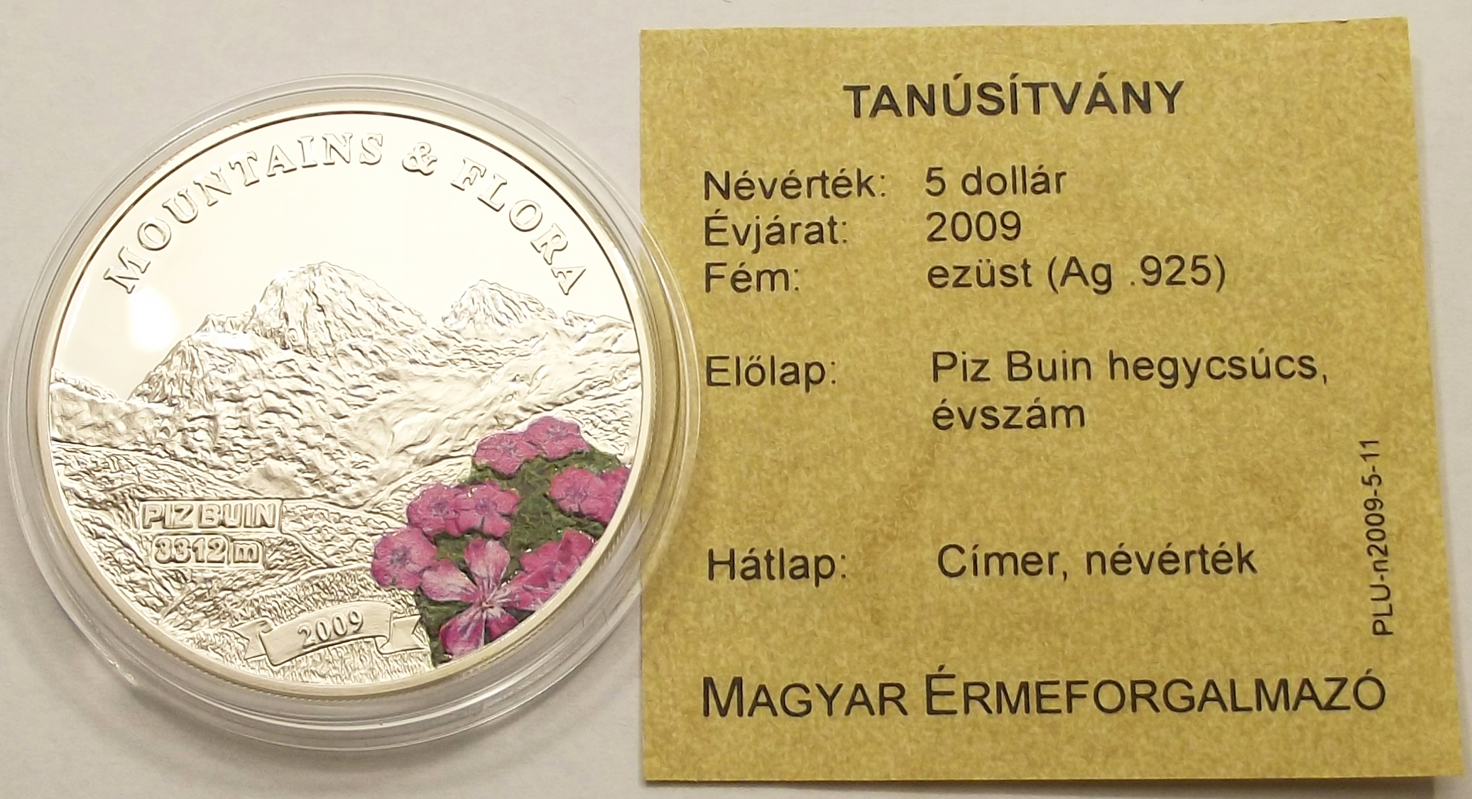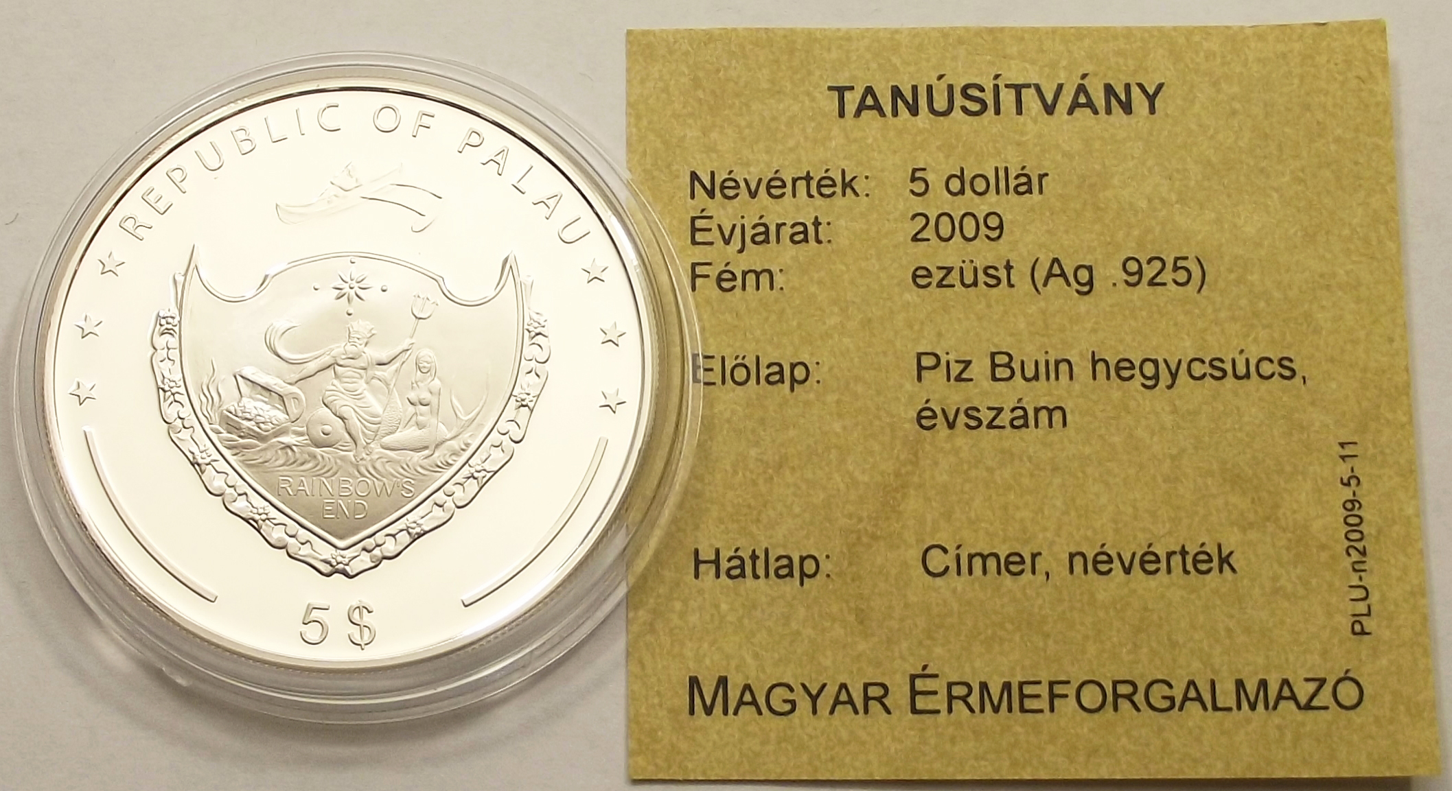 Palau 5 dollár 2009 PP – Piz Buin kiváló állapotban, certificate-el (bud.ör