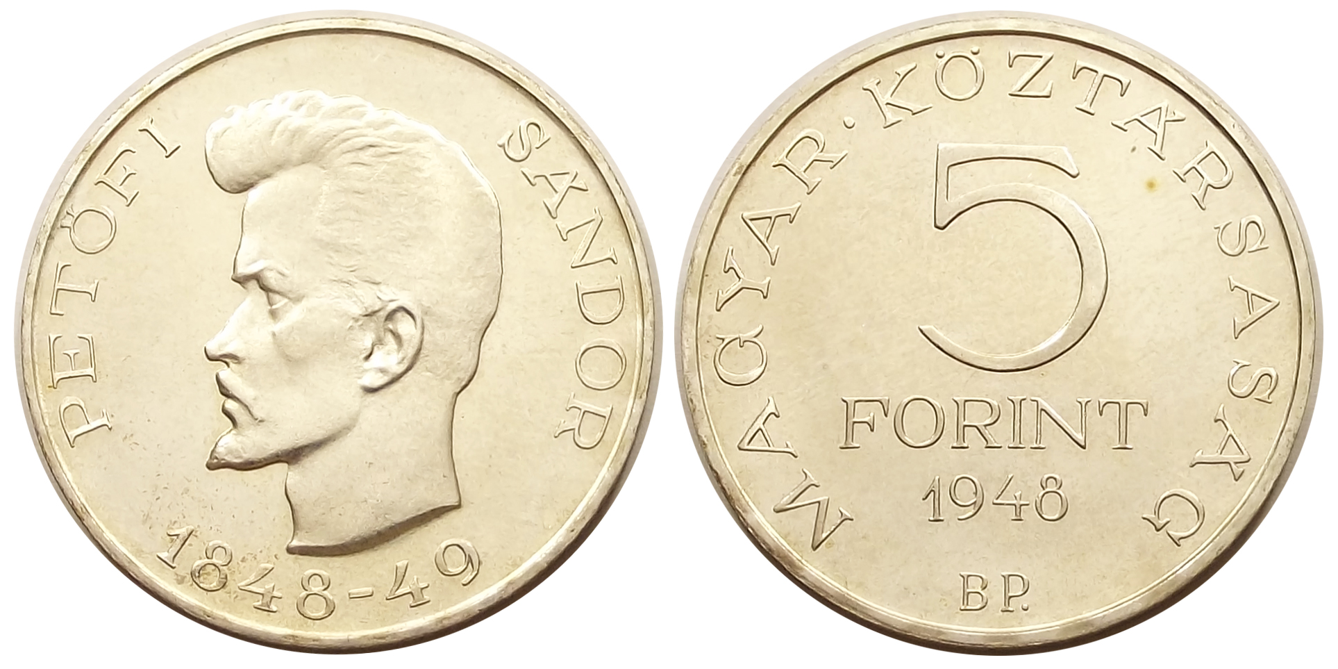 Petőfi 5 forint 1948 Proof ARTEX veret, kiváló állapotban (o l