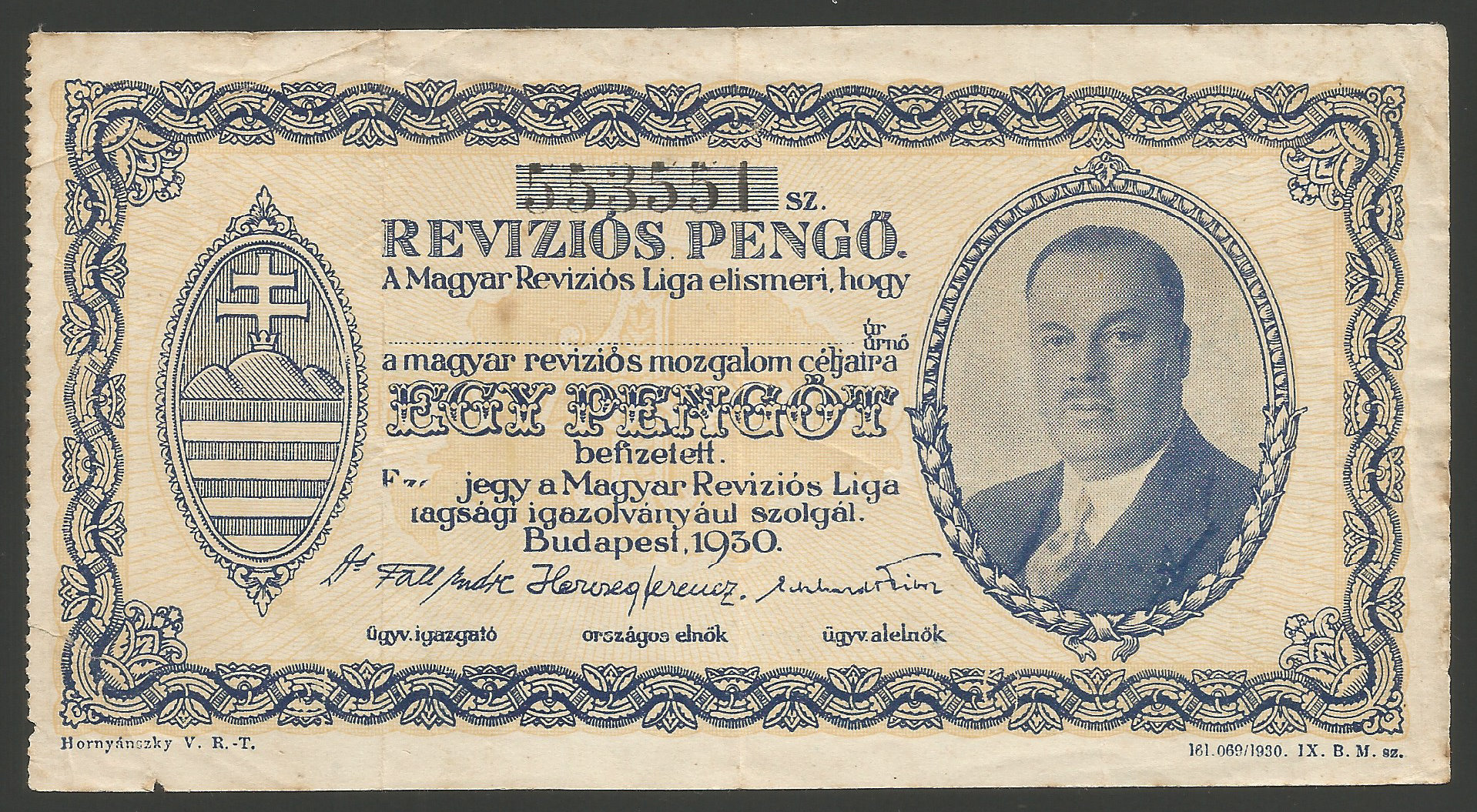 Revíziós pengő 1930 szép állapotban, több hajtással, jó papírral (sf