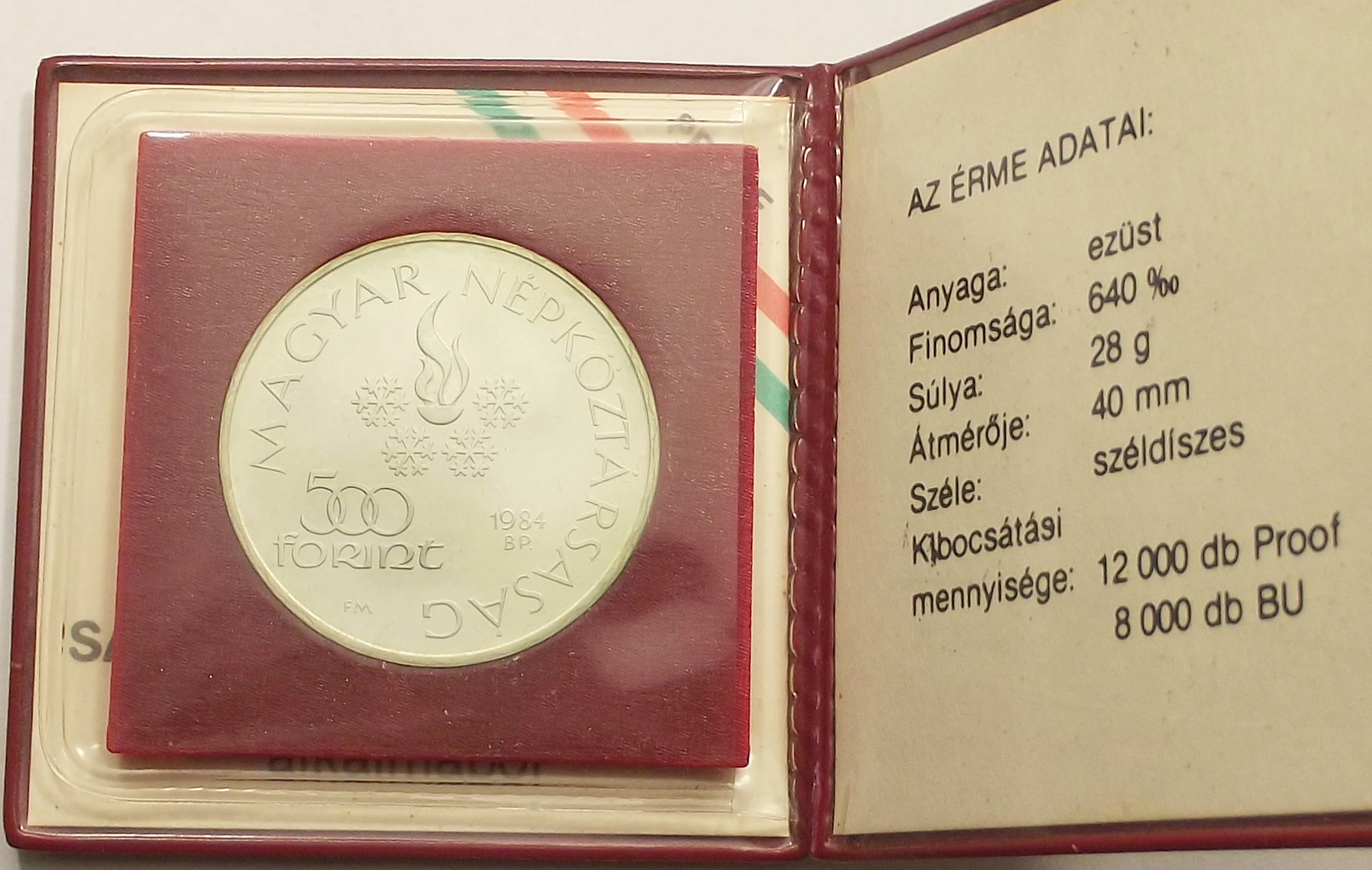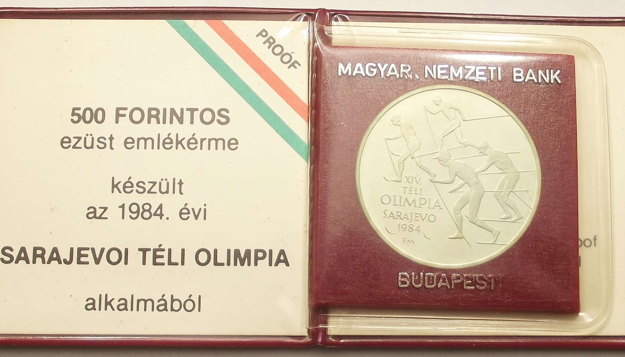 Sarajevo 500 forint 1984 BU eredeti csomagolásban, kiváló állapotban, enyhe foltok (dj