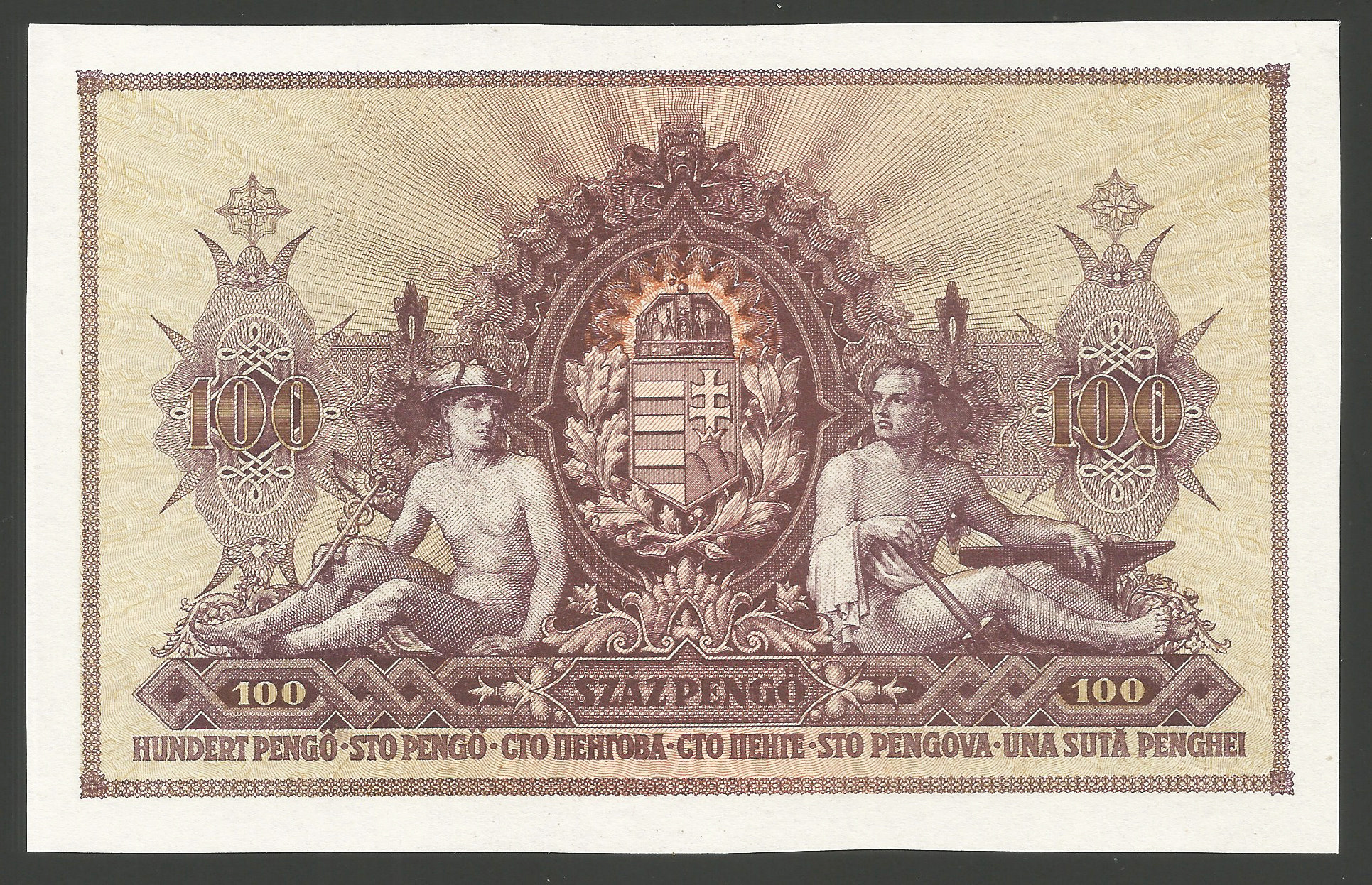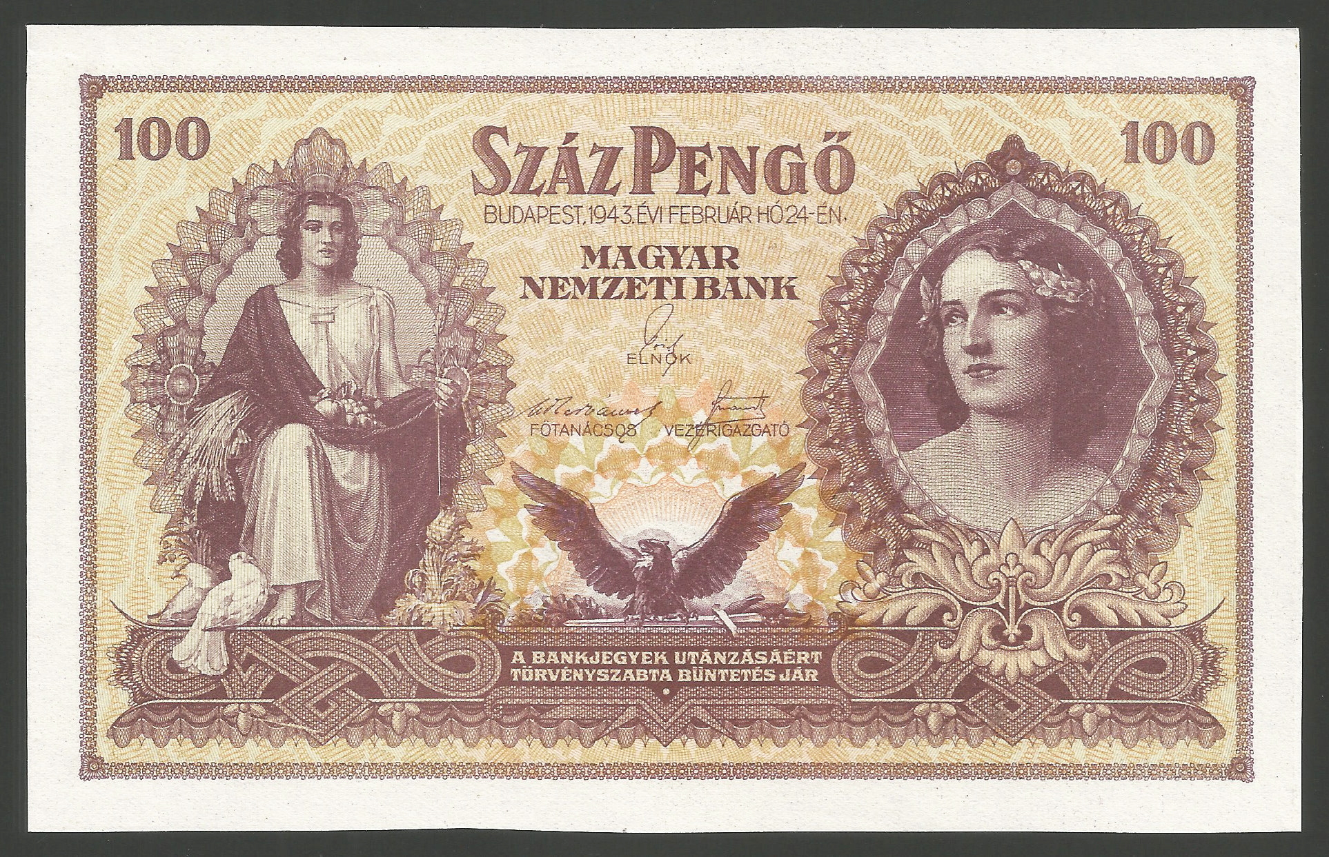 Ritka Szálasi 100 pengő 1943, kiváló hajtatlan állapotban (sf