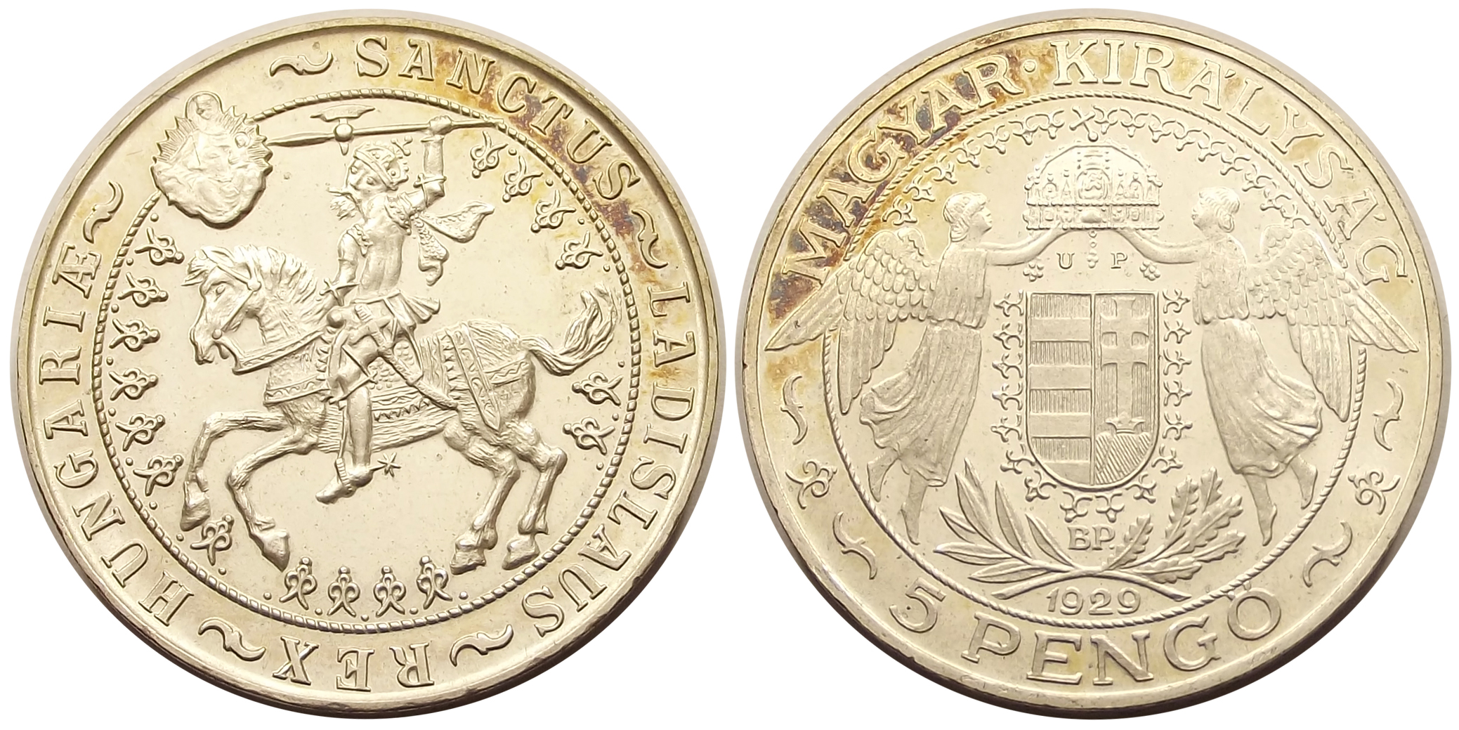 Szent László 5 pengő 1929 UP Artex, kiváló állapotban, patinával. (k