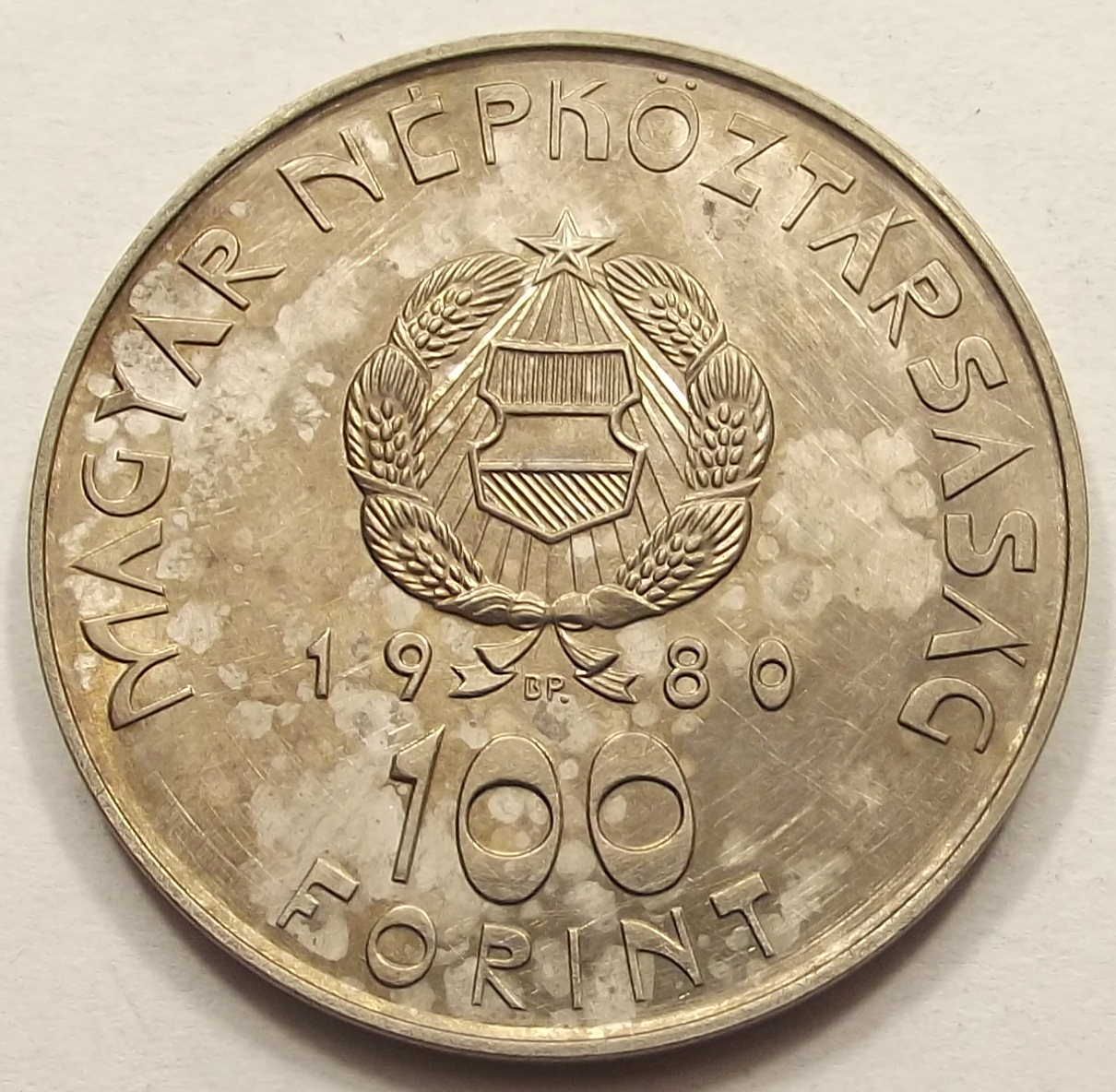 Szovjet-magyar űrrepülés 100 ft 1980 BU, foltok ill. karcok az érmén (tisztítva volt) (kf