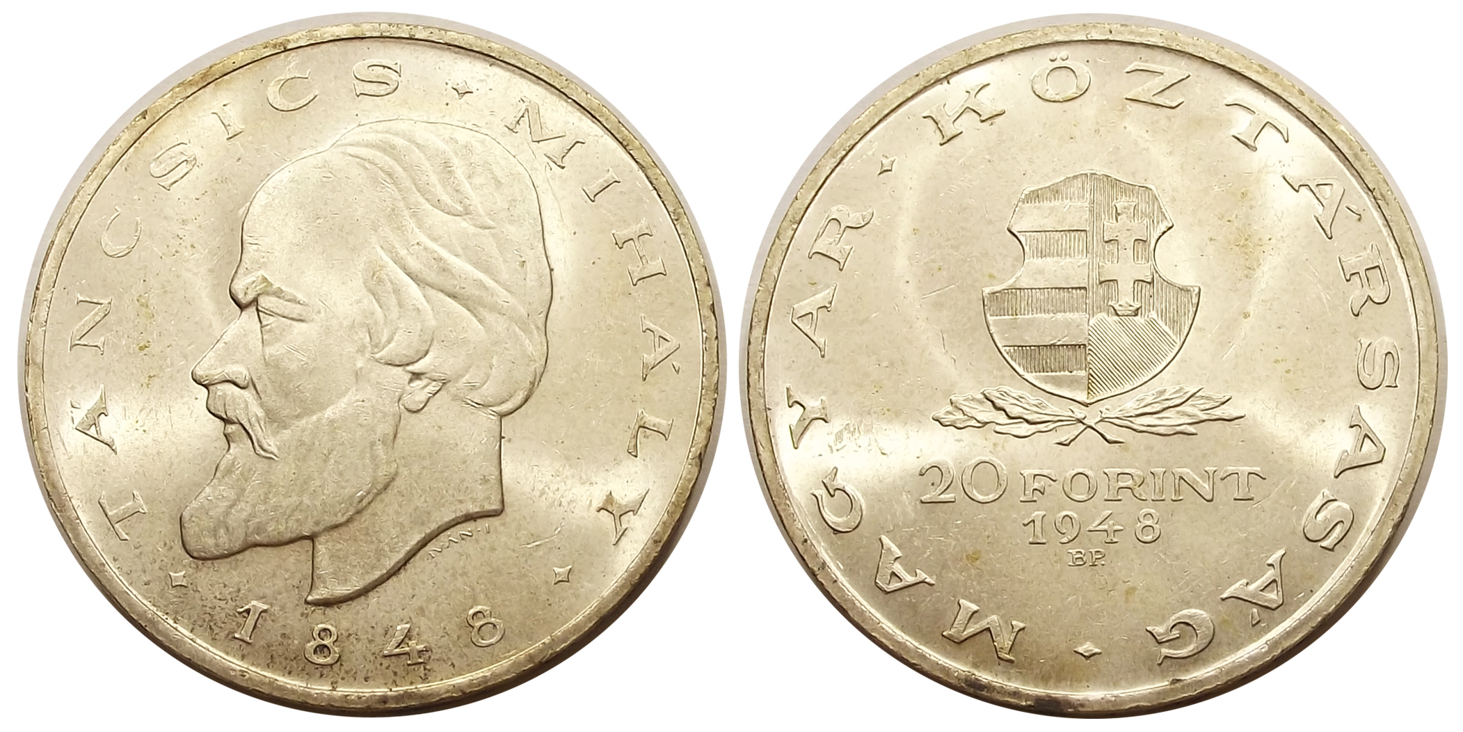 Táncsics 20 forint 1948, kiváló állapotban, szép eredeti fénnyel. (o l