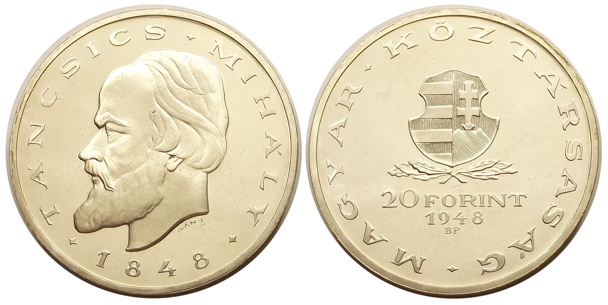 Táncsics 20 forint 1948 Proof ARTEX veret, kiváló állapotban (o l