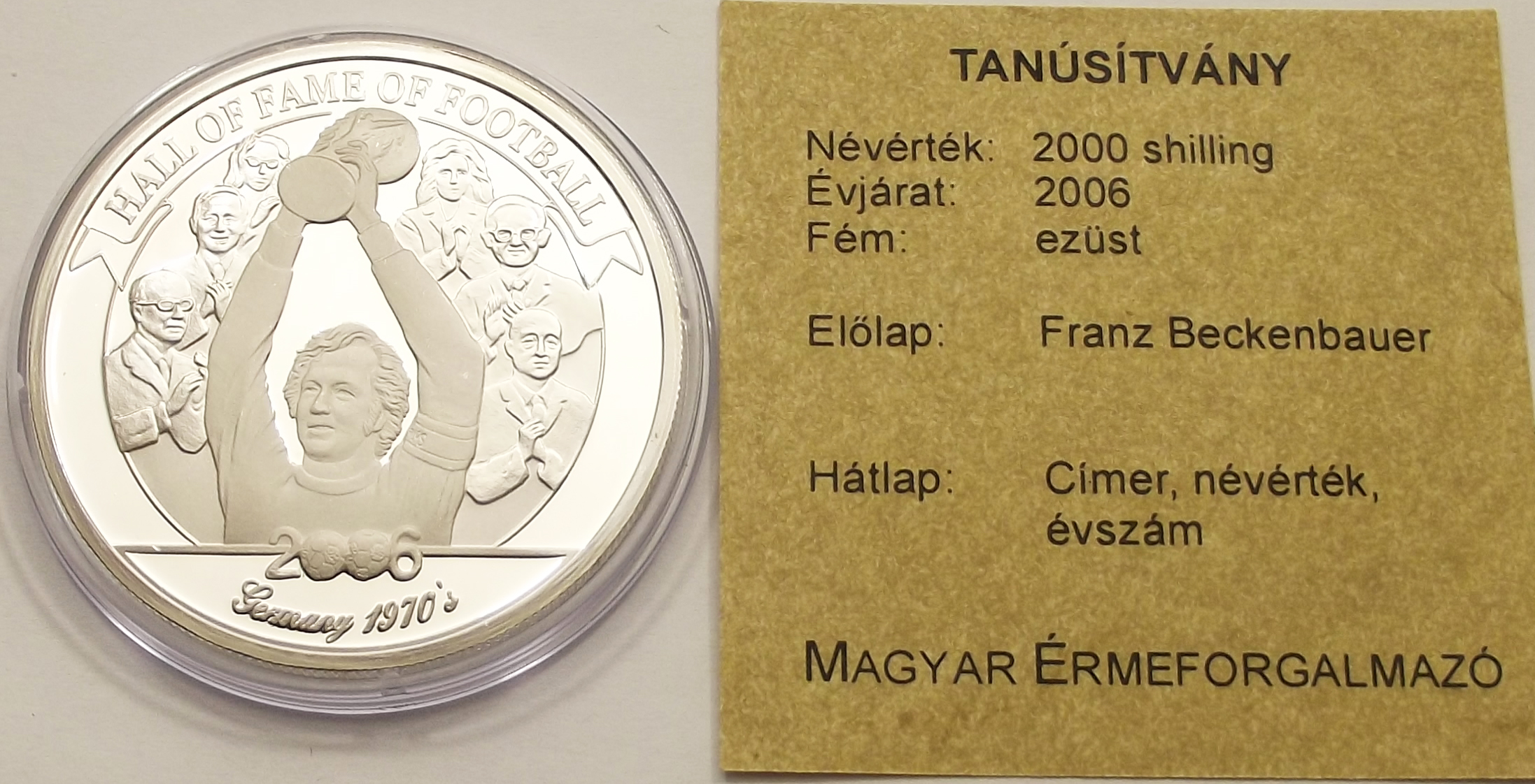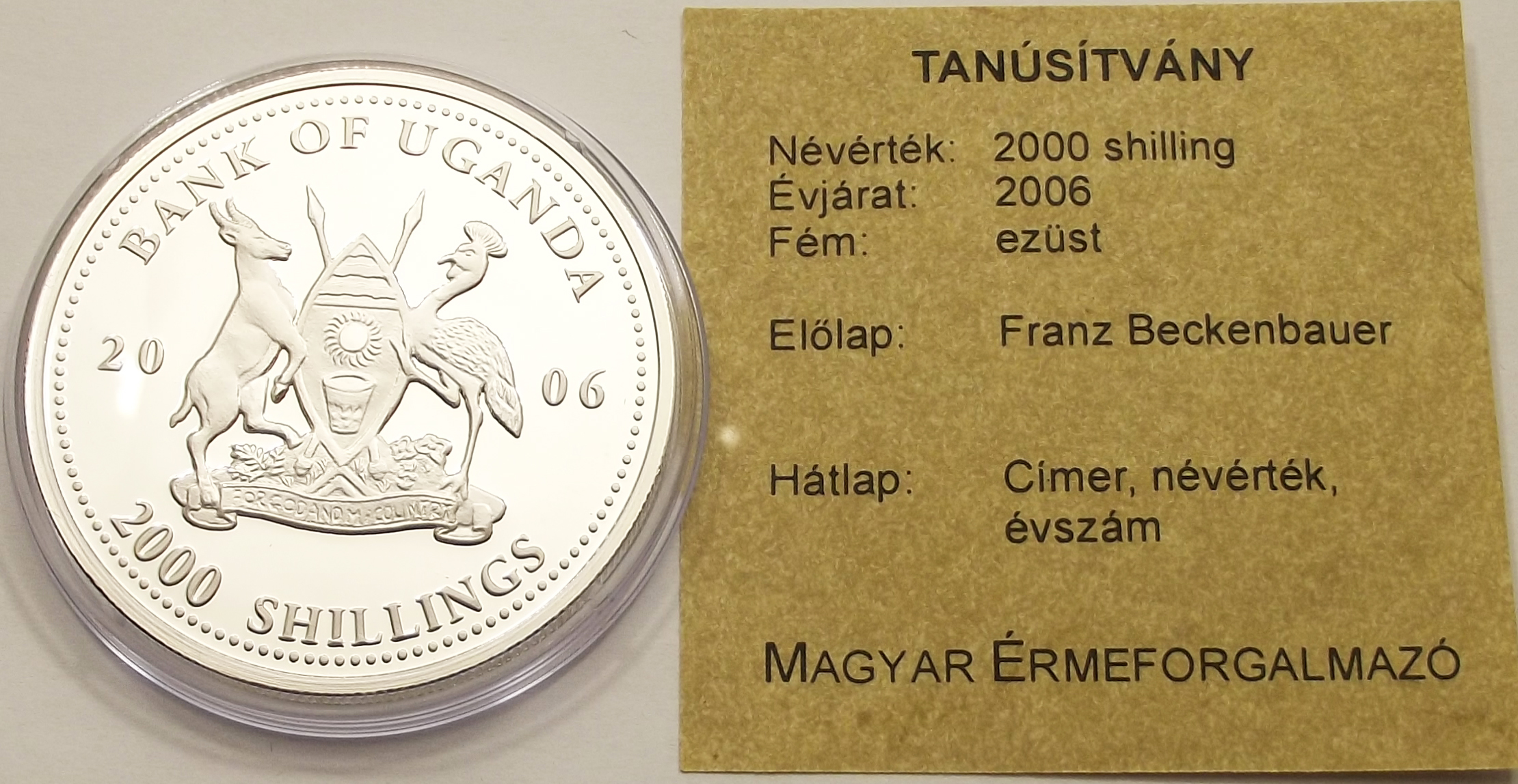 Uganda 2000 Shilling 2006 PP Hall of Fame of Football – Franz Beckenbauer érme, kiváló tartásban, certificate-el. (csm