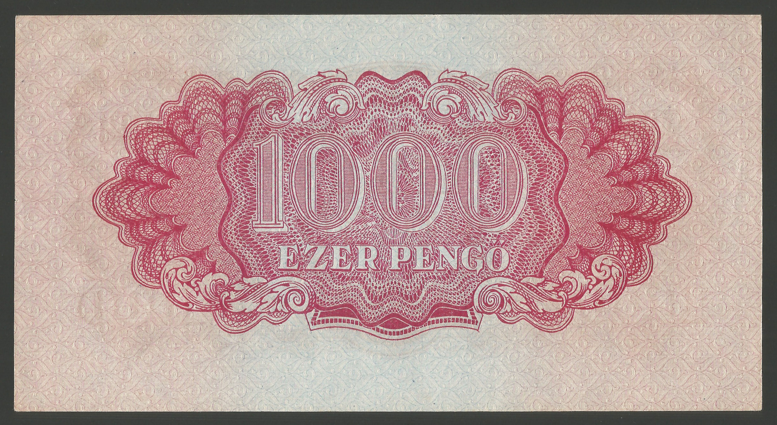Vöröshadsereg 1000 pengő 1944 kiváló hajtatlan állapotban, erős ropogós papírral. Apró, enyhe papírgyűrődések a bankjegyen, enyhe (nem megtört) sarokhajlás, szép sarkok, tökéletes tartású papír. Apró folt bal oldalt felül a hátoldalon. Ebben a tartásban ritka darab!