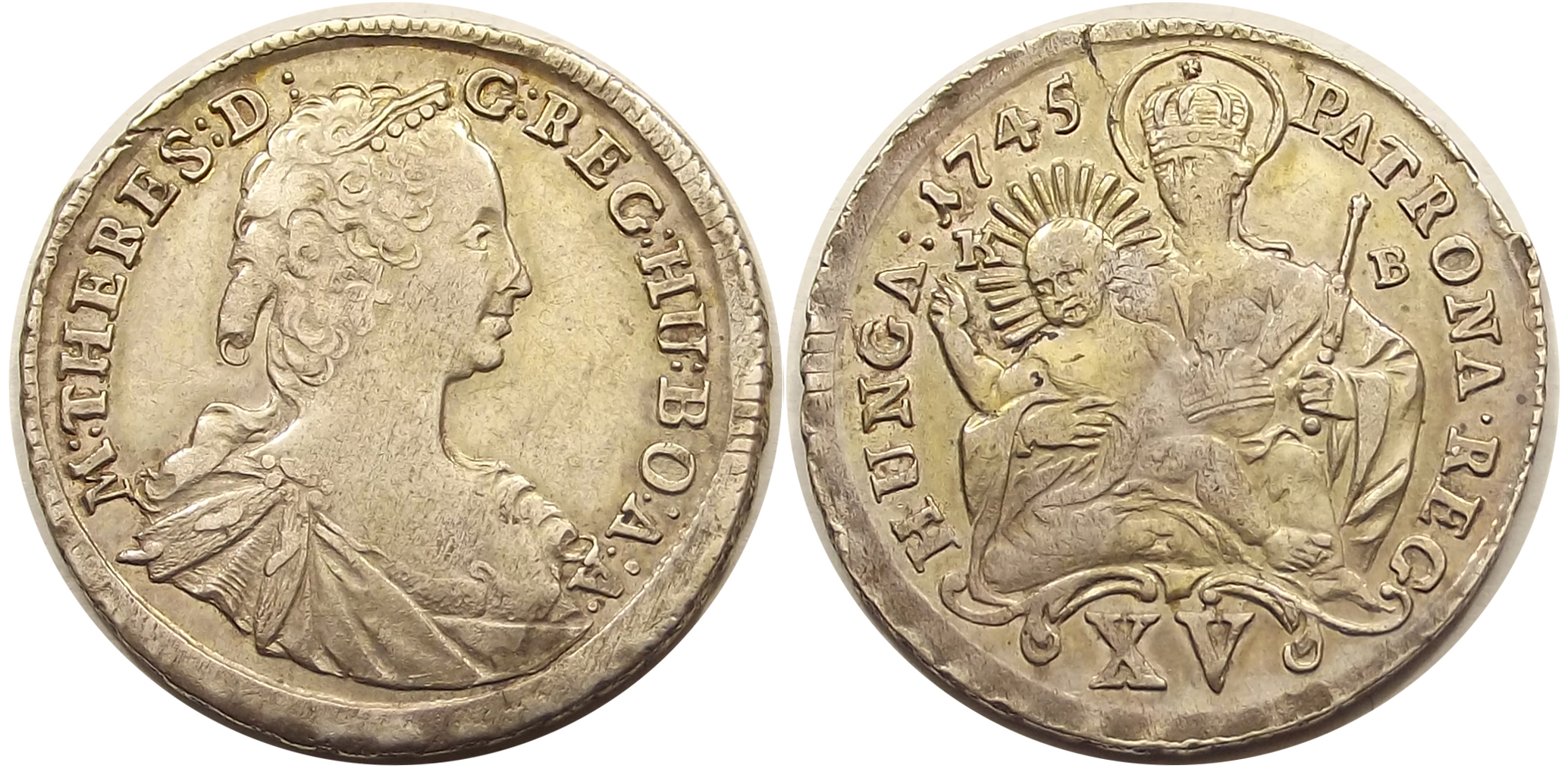 XV krajcár 1745 KB Mária Terézia, nagyon szép állapotban. Enyhén tisztított az érme. (dcs