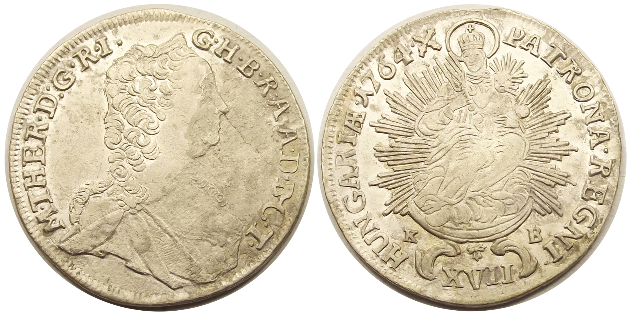 XVII krajcár 1764 KB Mária Terézia, nagyon szép állapotban. Az érme felülete portré oldalon érdes, dorozsmás (lapkahiba?) (baj.